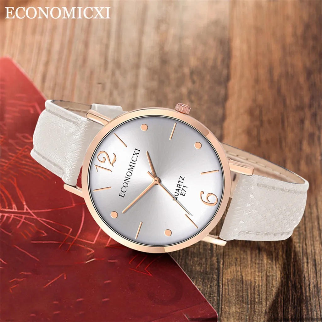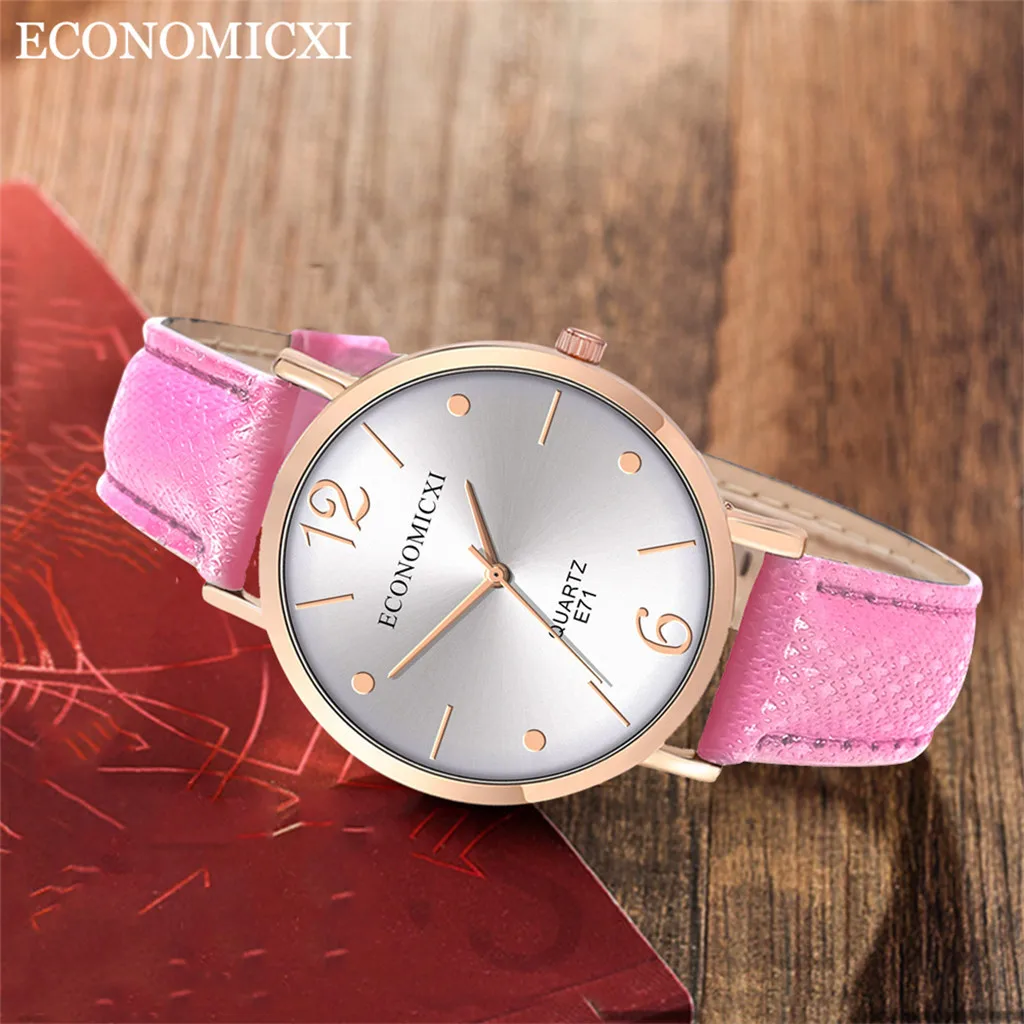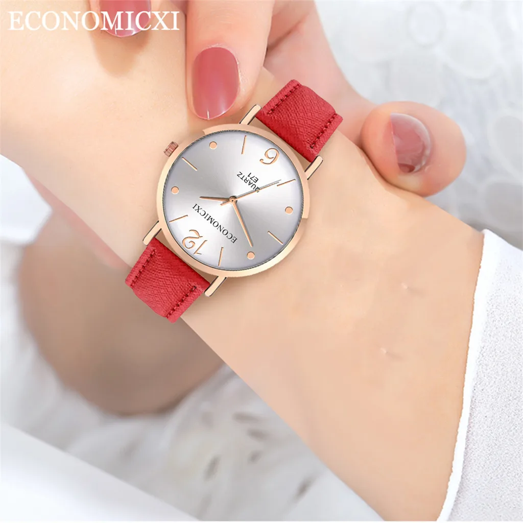 Модные Простые Женские часы с кожаным ремешком кварцевые круглые женские наручные часы женские кварцевые часы reloj mujer Relogio Feminino