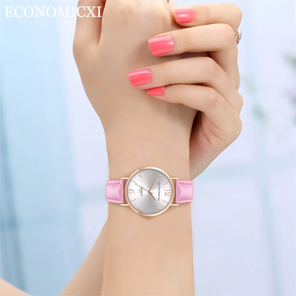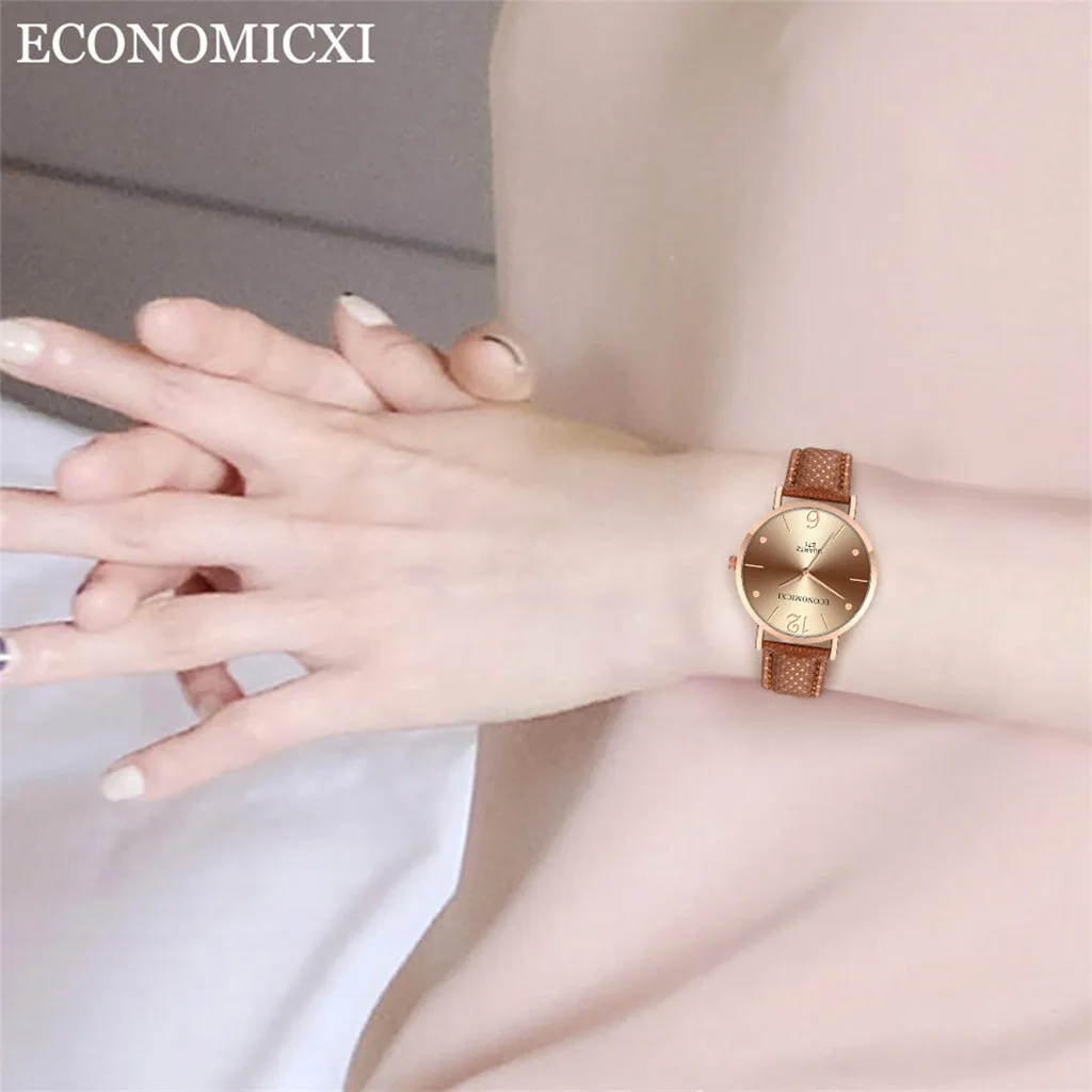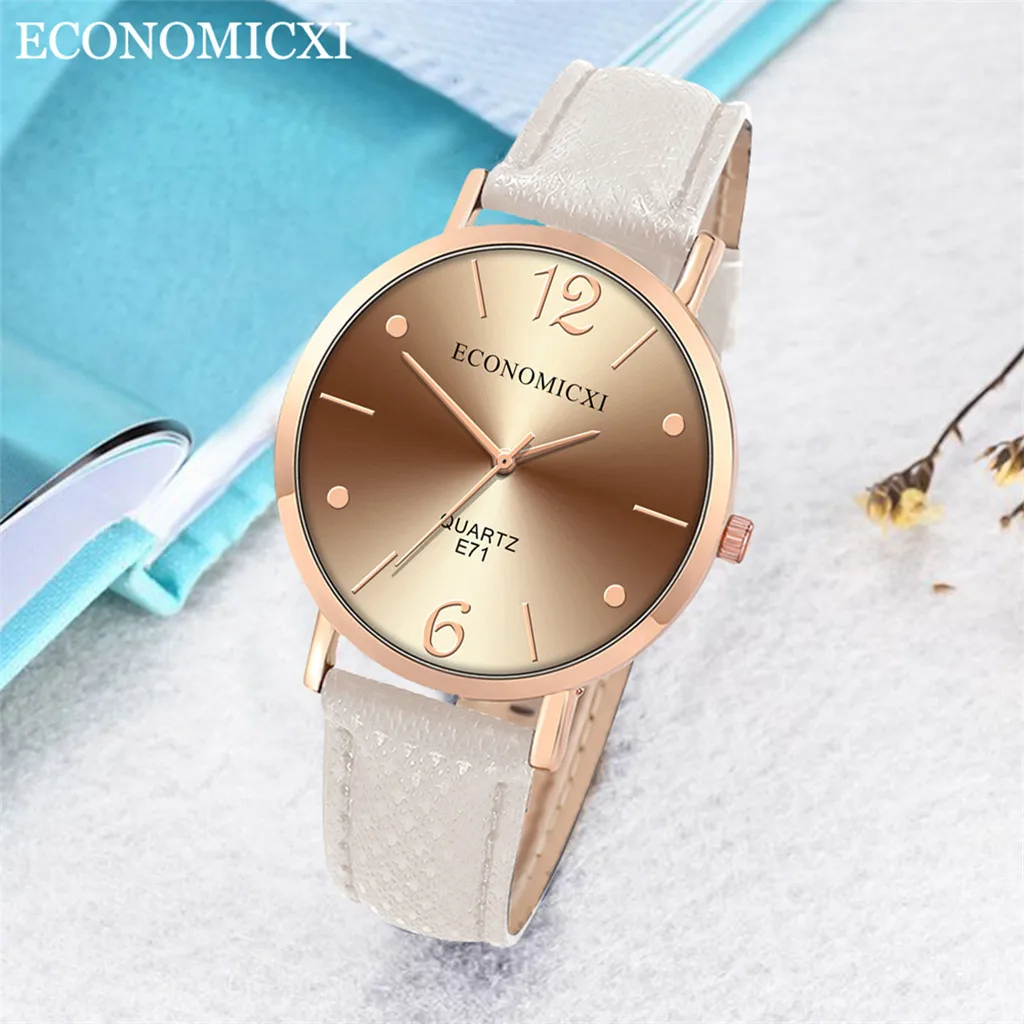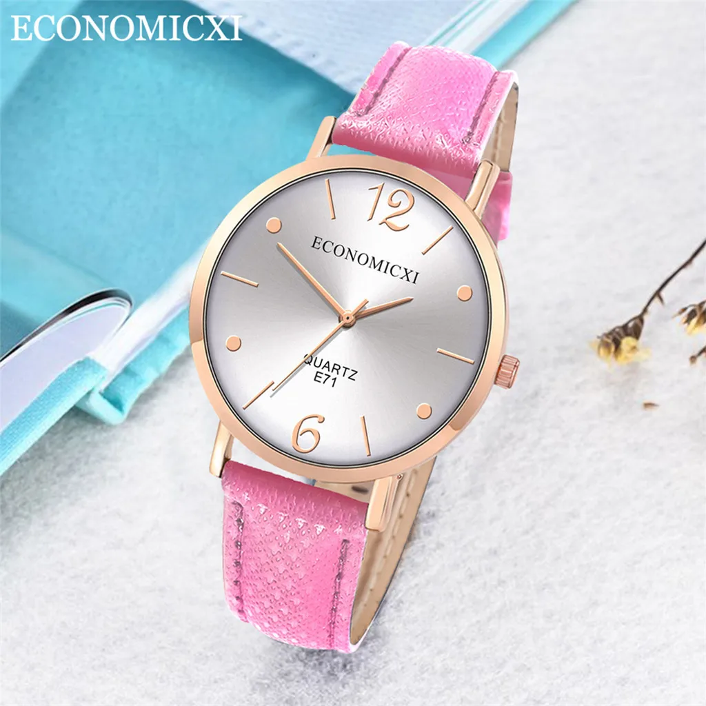 Модные Простые Женские часы с кожаным ремешком кварцевые круглые женские наручные часы женские кварцевые часы reloj mujer Relogio Feminino