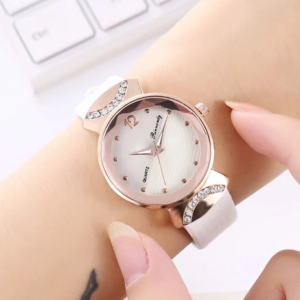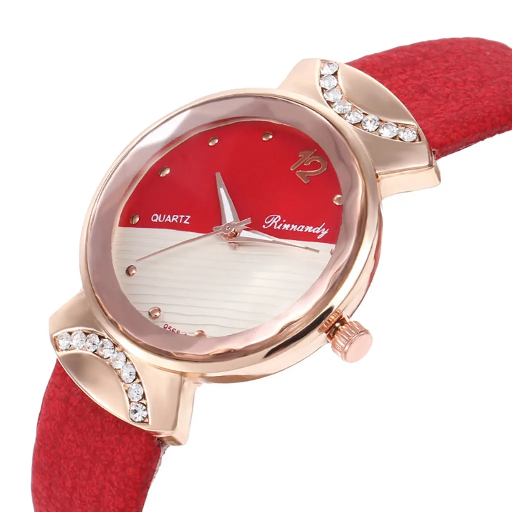 Повседневные модные женские часы из кожи с бриллиантами, креативные двухцветные Женские кварцевые наручные часы, женские повседневные часы, подарок, Montre Femme