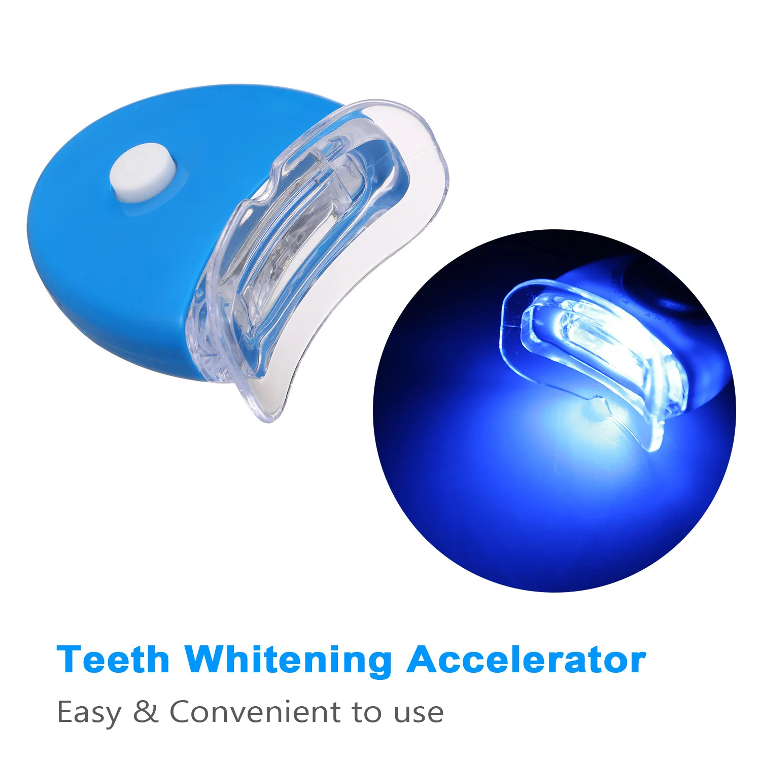 Поставляется с 3 отбеливающим гелем и ускорителем отбеливания зубов, который имеет яркий светодиодный свет, быстрый и эффективный.