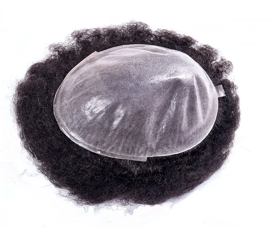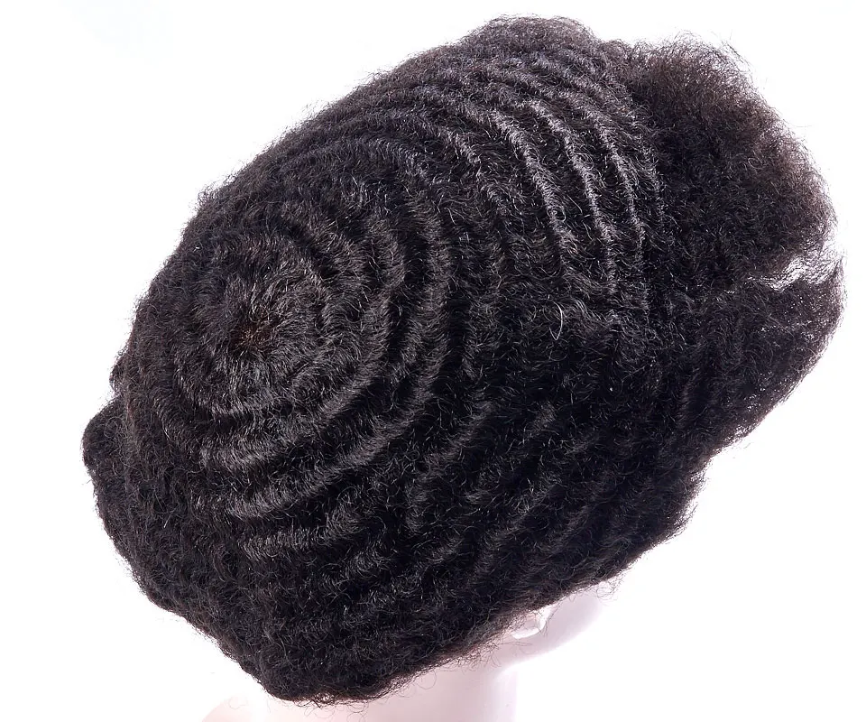 Мужские парик из тонкой кожи 0,12 мм афро кудрявые Сменные волосы ручной работы Индийские человеческие волосы Remy