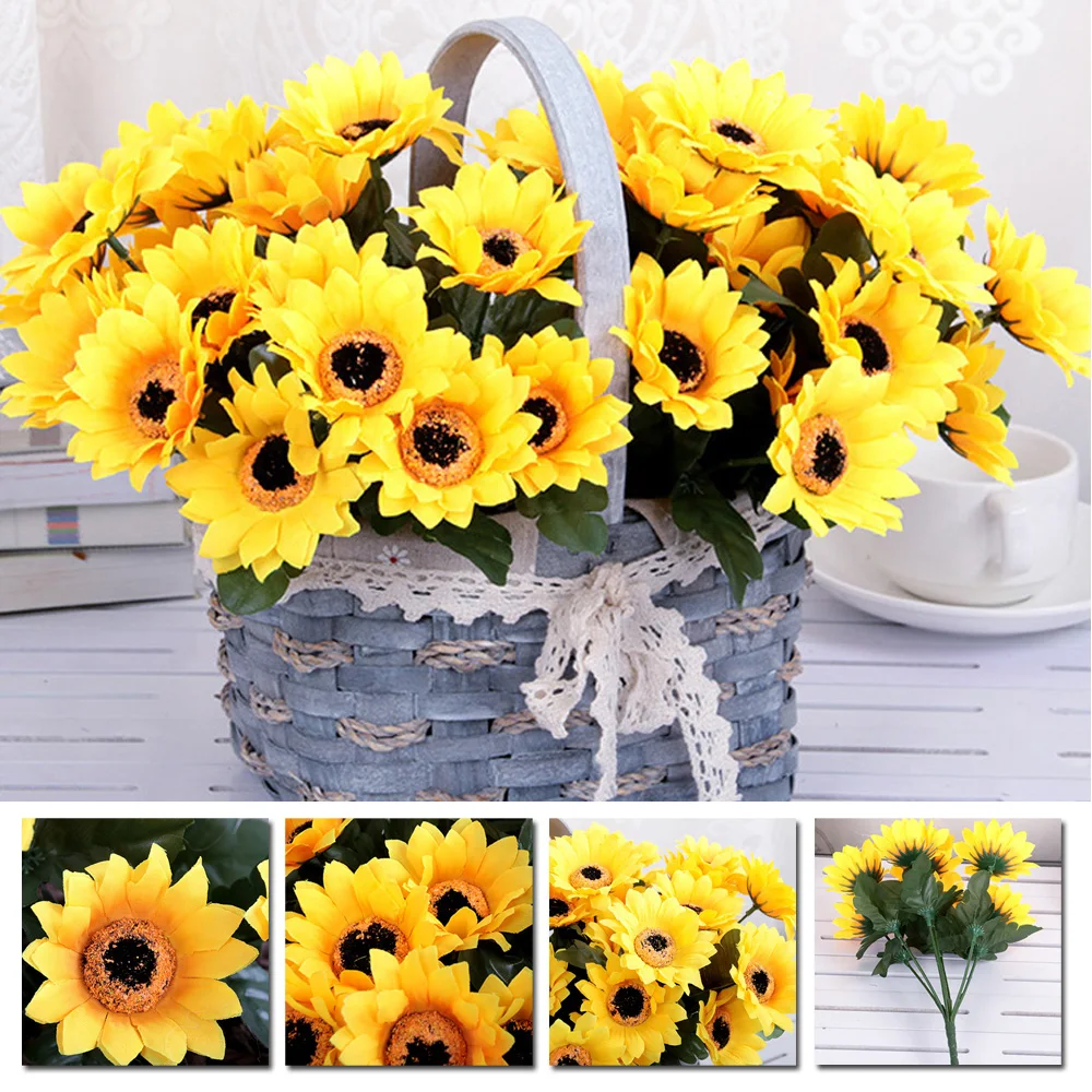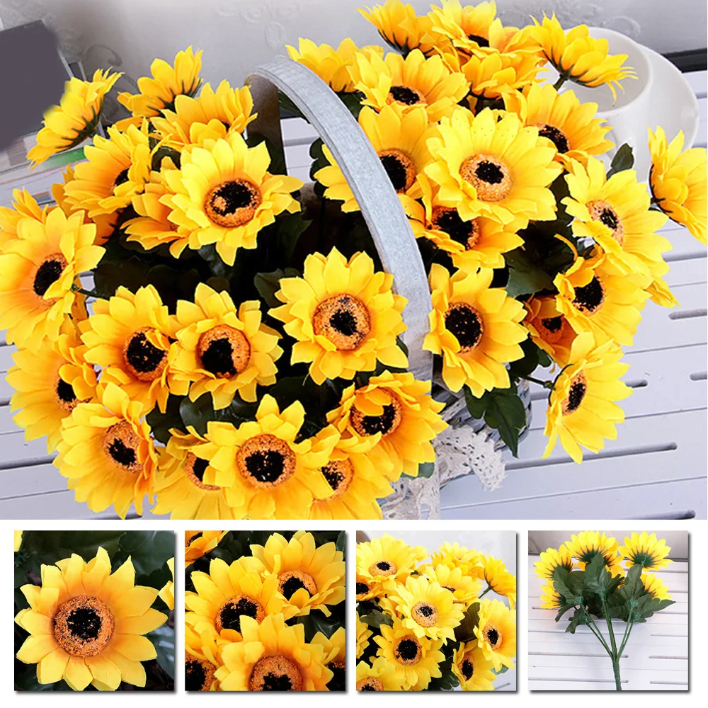 *Искусственный подсолнух 7 цветочных головок для домашнего декора