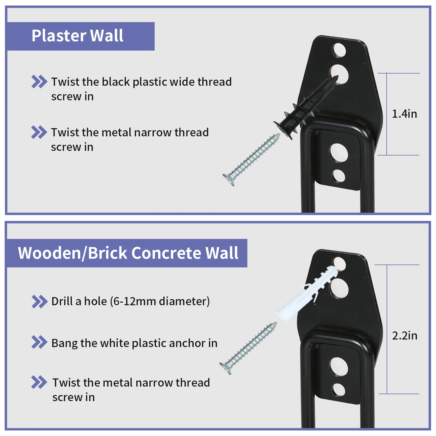 2 вида шурупов для различных стен --- Черная Широкая резьба винтовые заглушки для использования на штукатурной стене, и белые расширительные анкеры для использования на деревянных, кирпичных и Бетонных стенах, оба требуют стальных винтовых гвоздей.