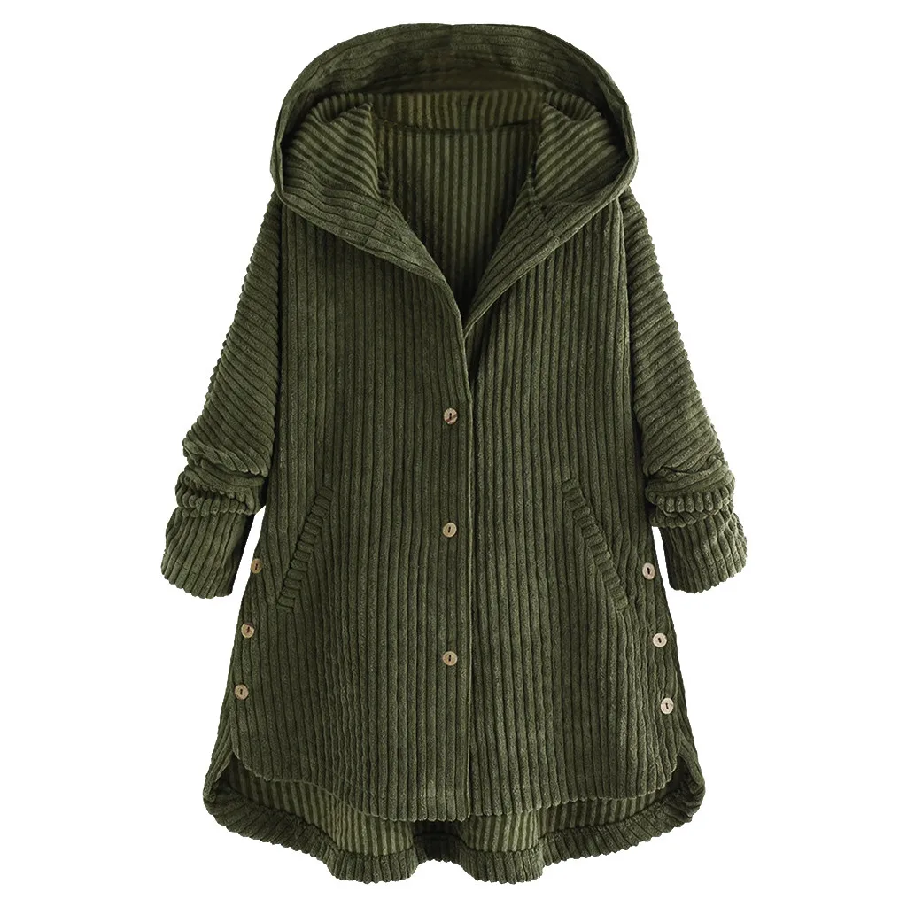 Женская осенняя и зимняя одежда с длинными рукавами и карманами на пуговицах с капюшоном