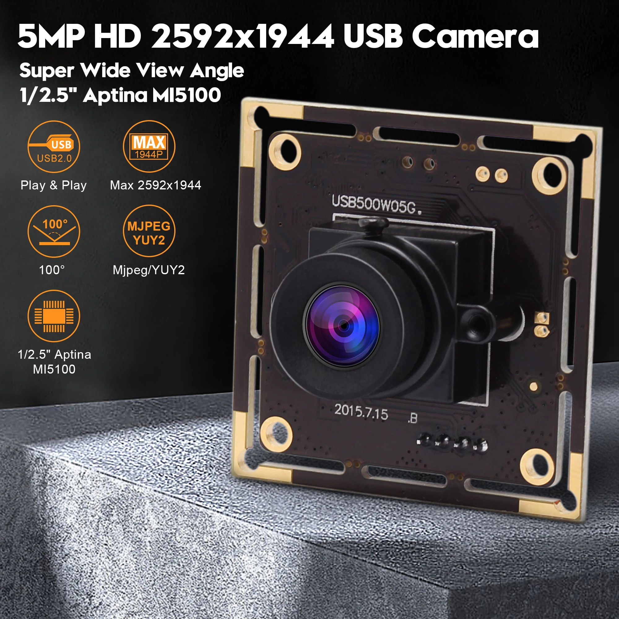 1. Разрешение Ultra HD:Эта камера использует 5-мегапиксельный цветной COMS-датчик Aptina MI5100 для четких изображений и точной цветопередачи. Максимальное разрешение: 2592x1944, высокая частота кадров 1080P @ 30 кадров в секунду, Формат сжатия: MJPG / YUY2; Насыщенность, контрастность, баланс белого регулируется.