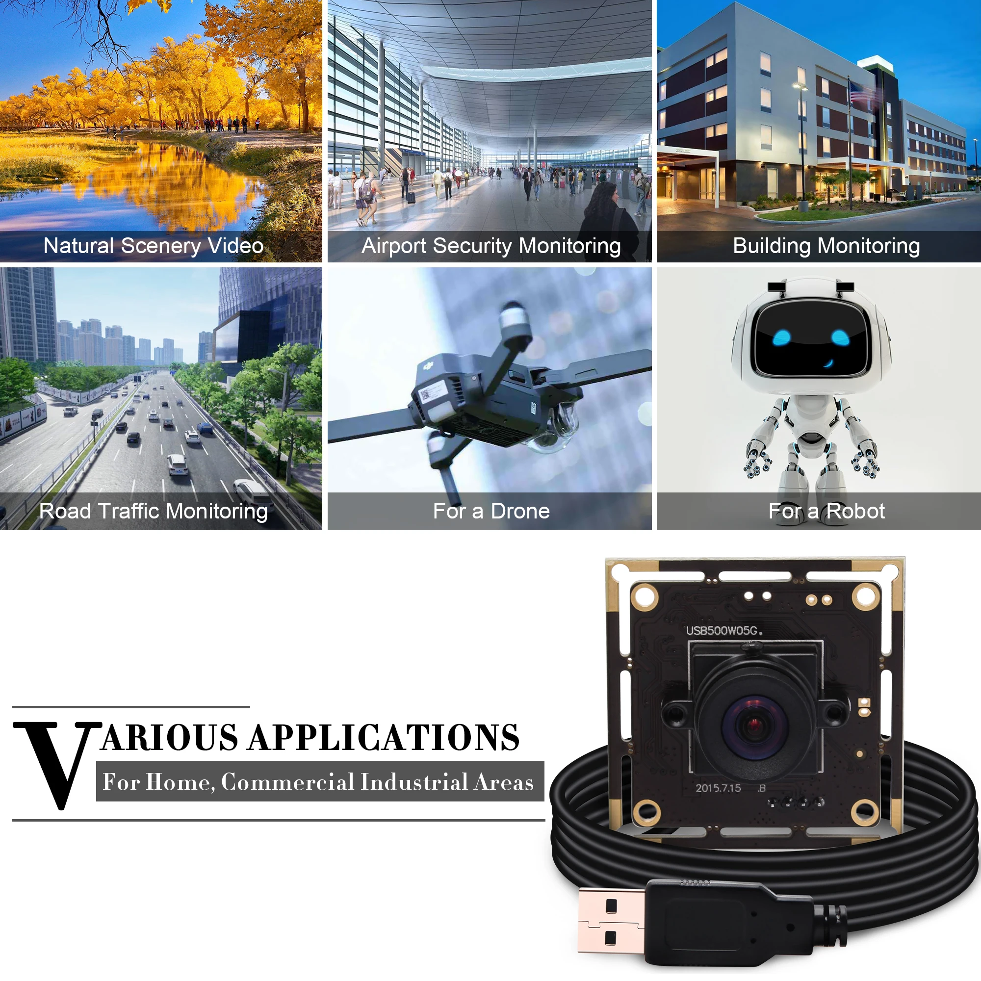 5. Применение:Эта крошечная камера настоятельно рекомендуется для системы видеонаблюдения, прямой трансляции, видеоконференции, dashcam, сканирования документов/паспорта, фотосъемки с удостоверениями личности и высокоскоростного фотографического аппарата. Штрих-код, сканирование qr-кода и другие системы видения роботов.