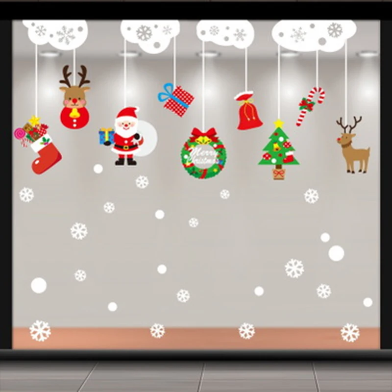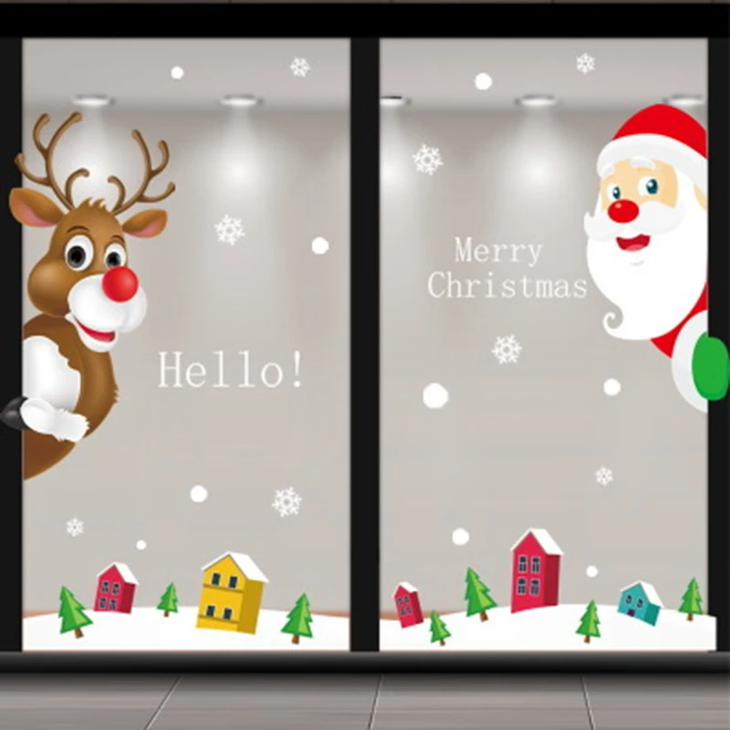 Рождественское украшение для дома, наклейка на стену, окно, стекло, дверь магазина, Рождественское украшение, наклейка на Рождество, Новогоднее украшение
