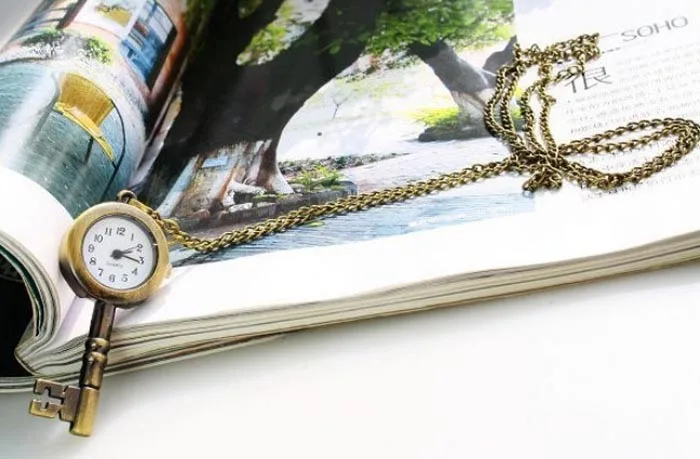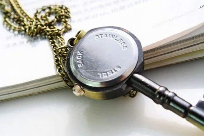 Бронзовый Милый Винтажный дизайн ключей Кварцевые ключевые женские ожерелья Подарочные карманные часы