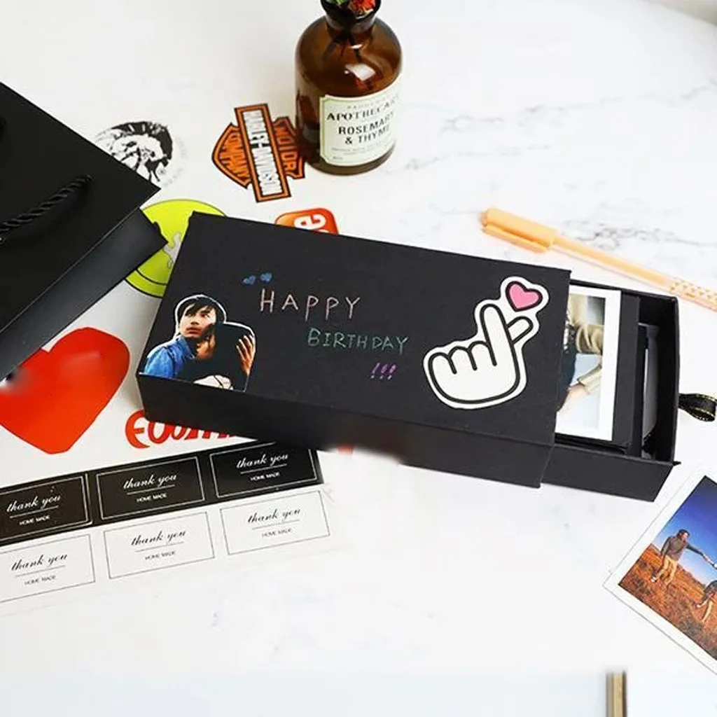 Коробка выглядит как обычная Подарочная коробка, когда закрыта, но после открытия 6 маленьких подарочных коробок будут скакать вверх и показать всю картинку, которую вы положили в нее.