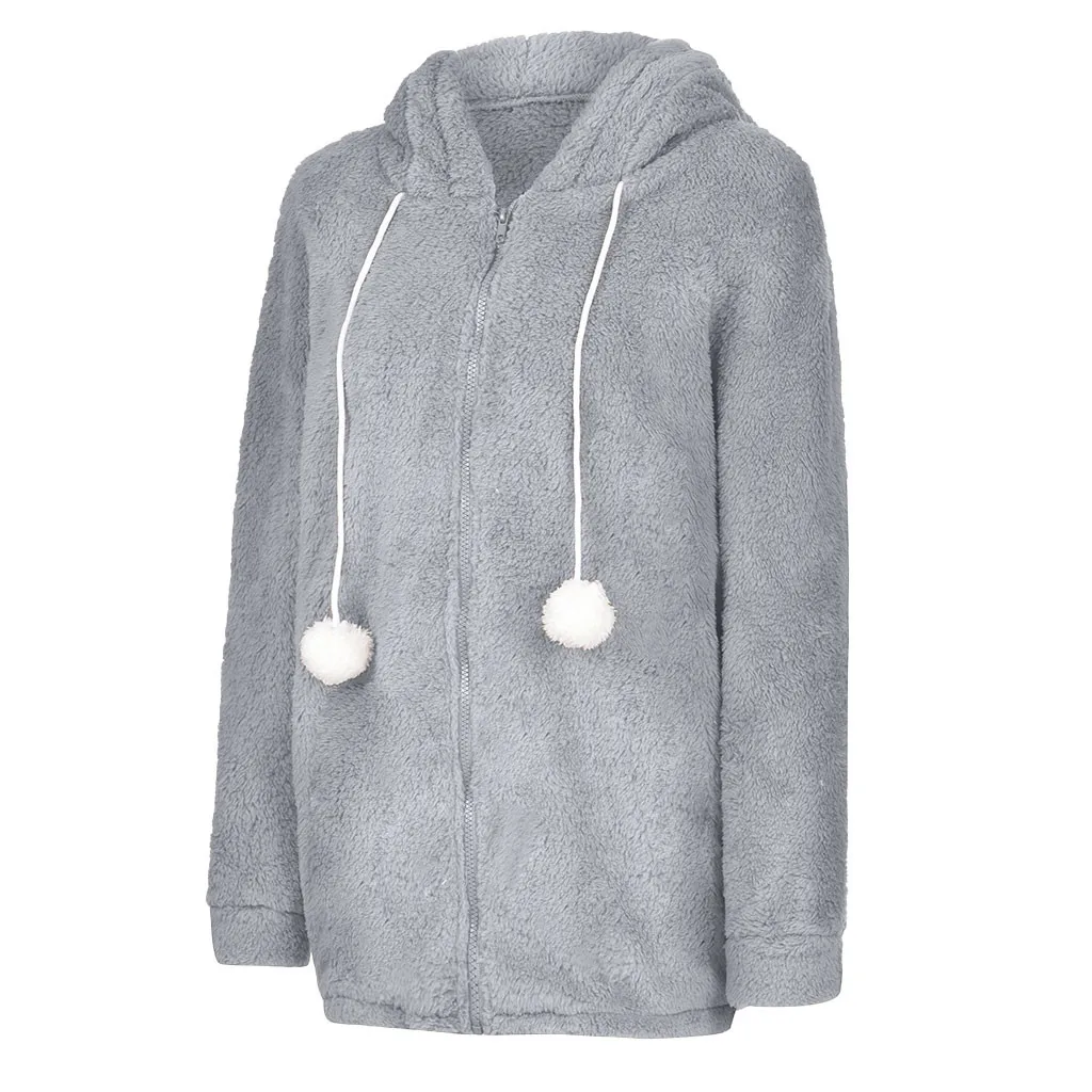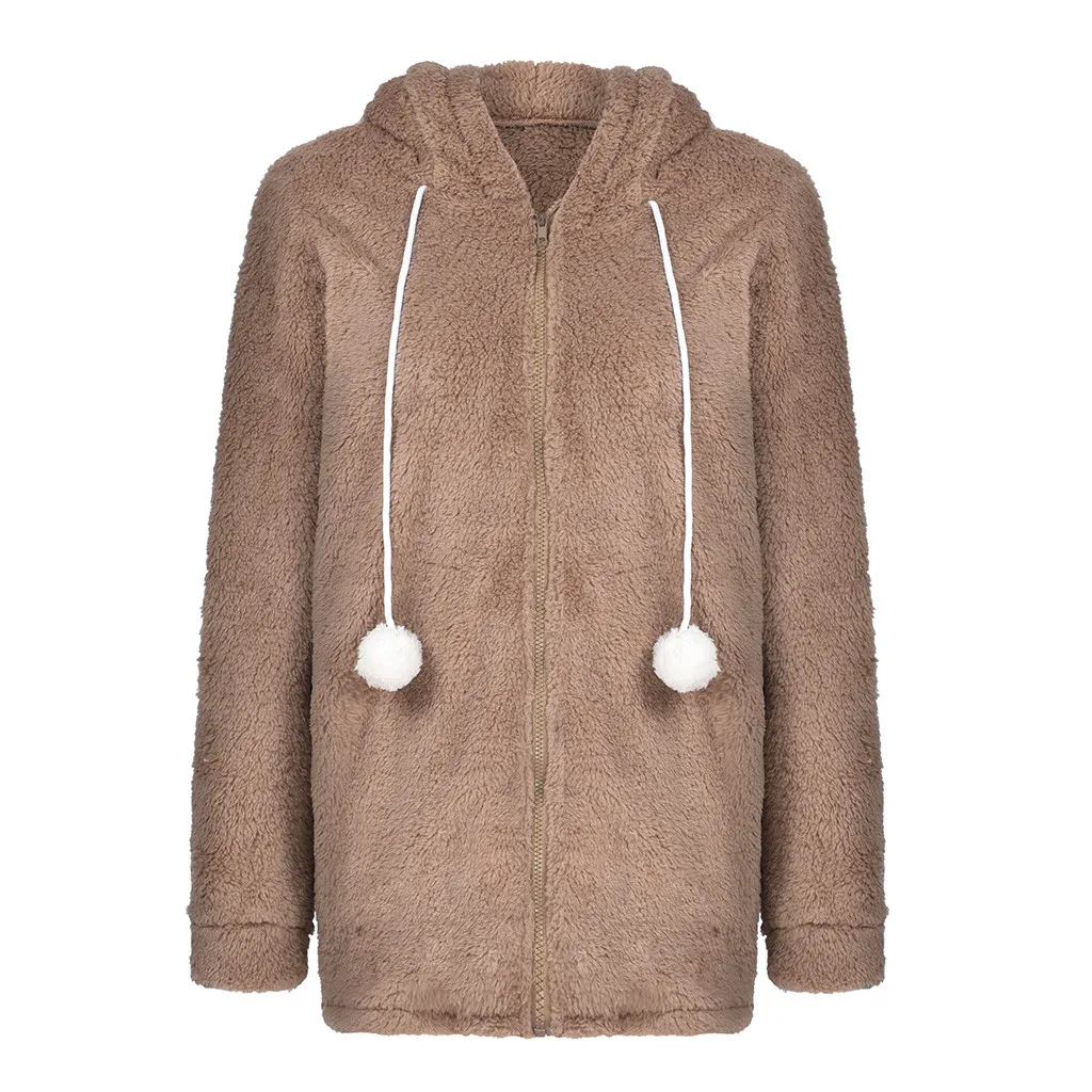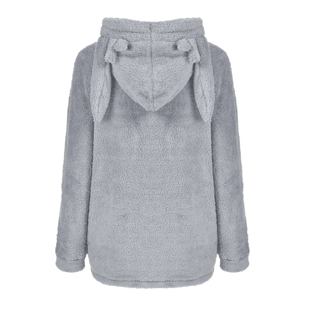 Женская зимняя теплая куртка из искусственного меха с капюшоном, верхняя одежда с заячьими ушками