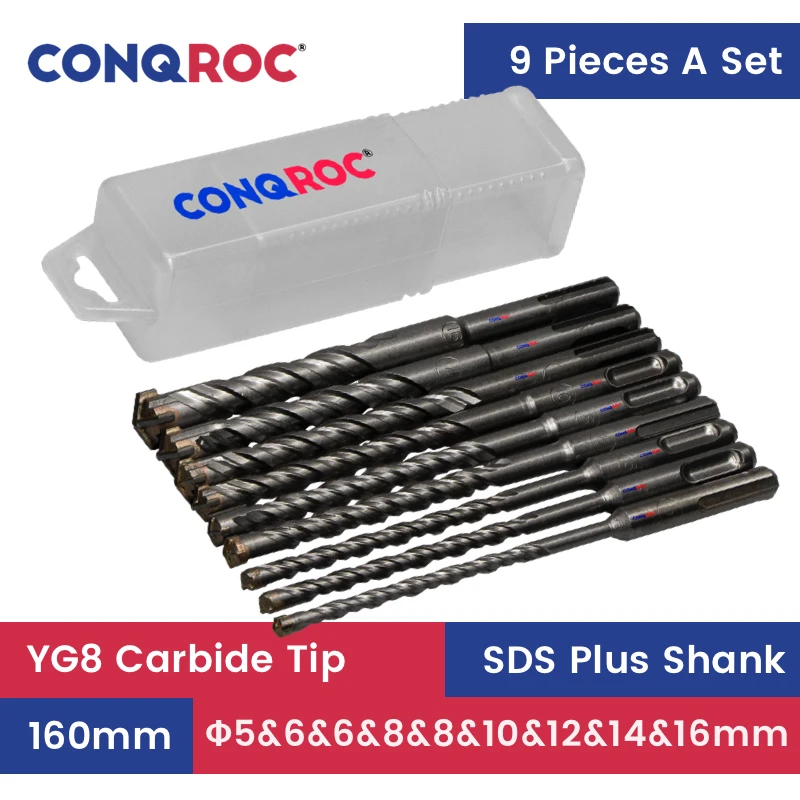 9 шт. 160 мм SDS Plus каменная кладка крест сплав наконечник двойной спиральный молоток сверла набор