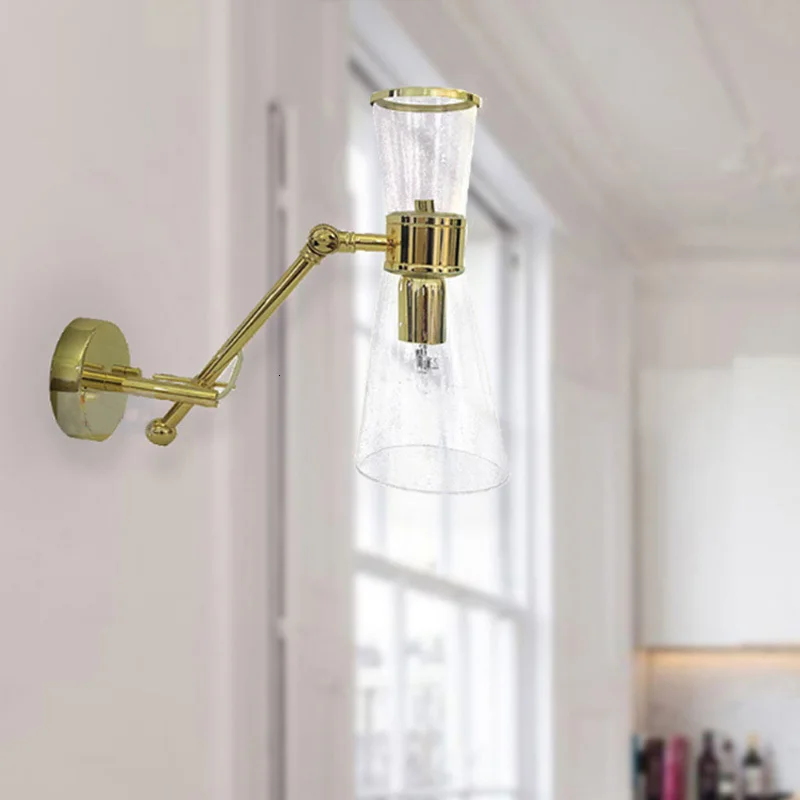 Modern simple glass wall lamp with gold copper base
