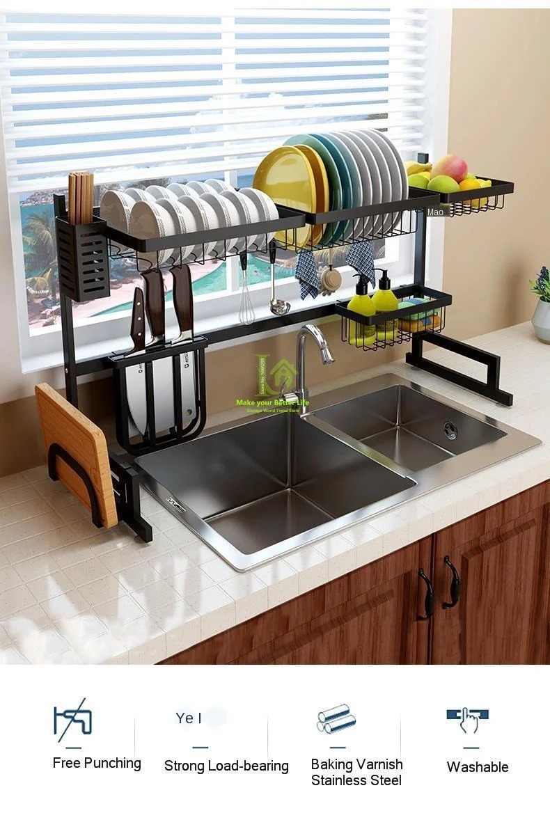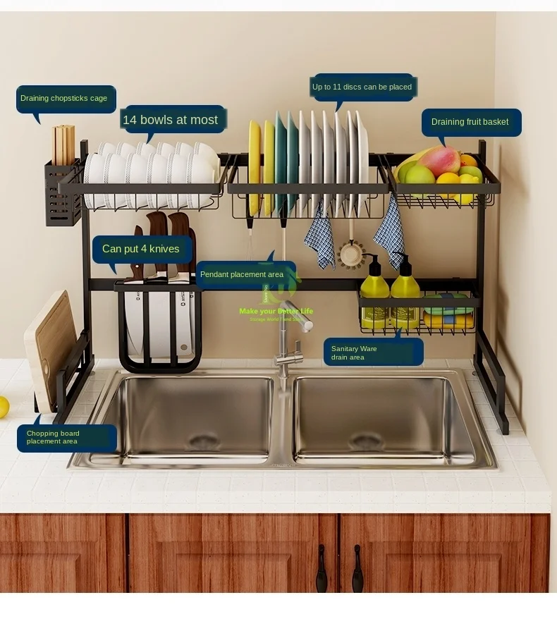 Dish rack drain 304 stainless steel kitchen racks dish dishes dishes tableware storage box cupboard 3 layer homeUS $ 64.00 /