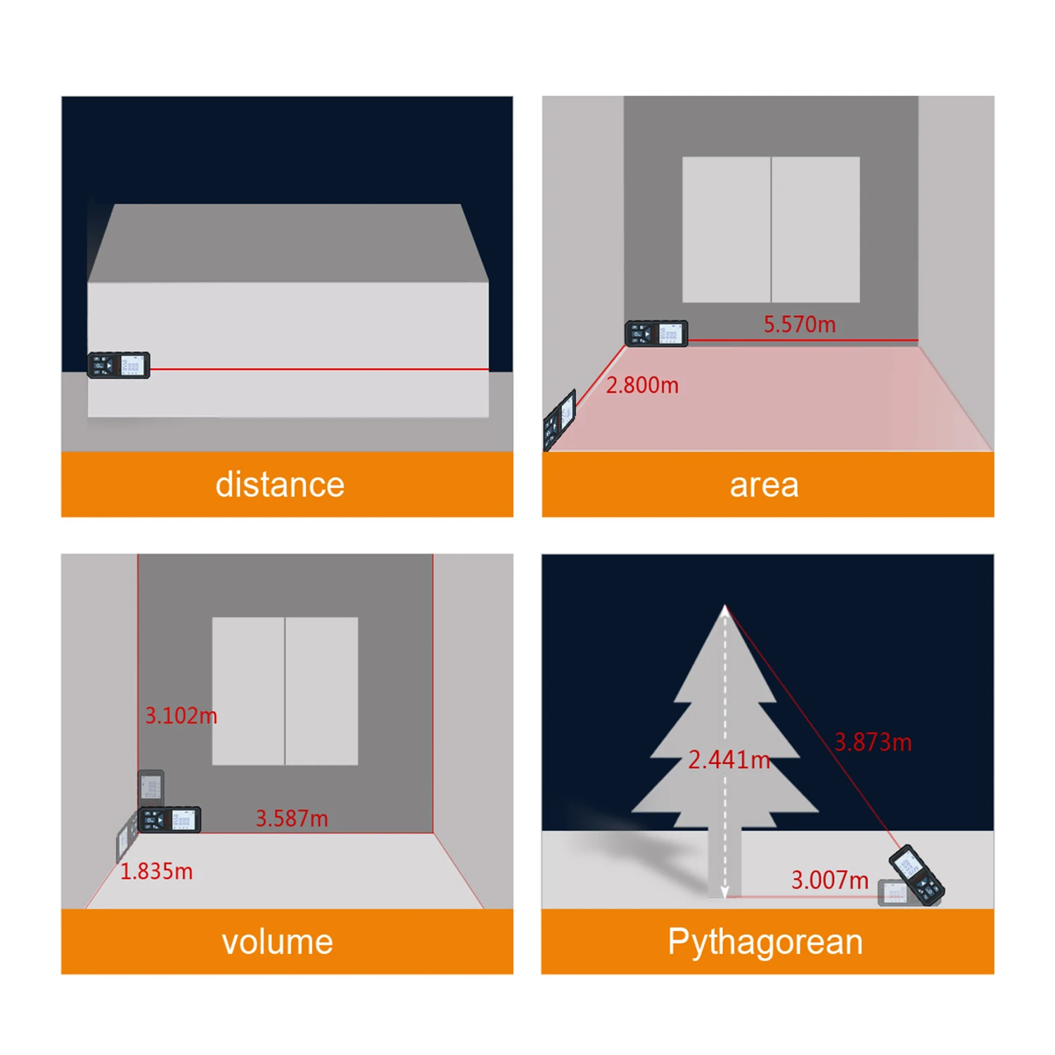 Хотите профессиональный лазерный дальномер с более высокой точностью? Попробуйте этот мини лазерный дальномер. Он может измерять расстояние, площадь и объем. Он также используется для непрямого измерения по теореме Пифагора. Простой в эксплуатации, точный в измерении, подходящий размер для вашей ладони, супер светильник для удобной переноски.