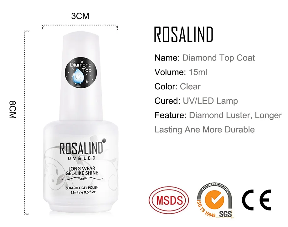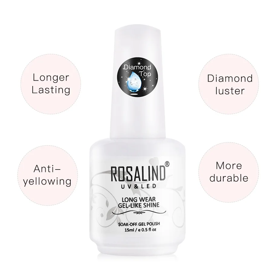 ROSALIND 15 мл Алмазный гель для ногтей верхнее покрытие художественный дизайн замочить сверху светодиодный/УФ-лампа