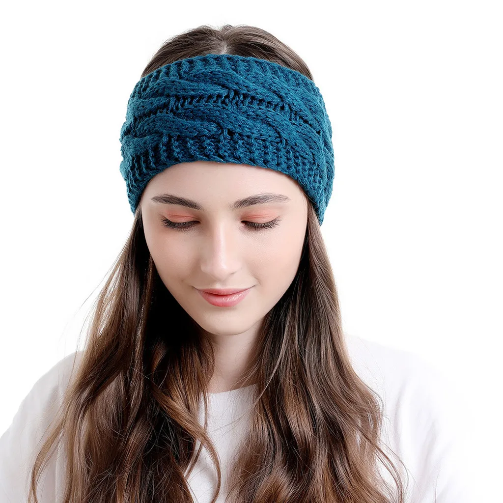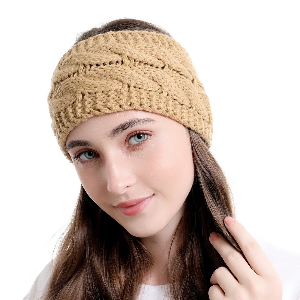 Модная осенняя и зимняя однотонная шерстяная вязаная повязка для волос спортивная повязка на голову