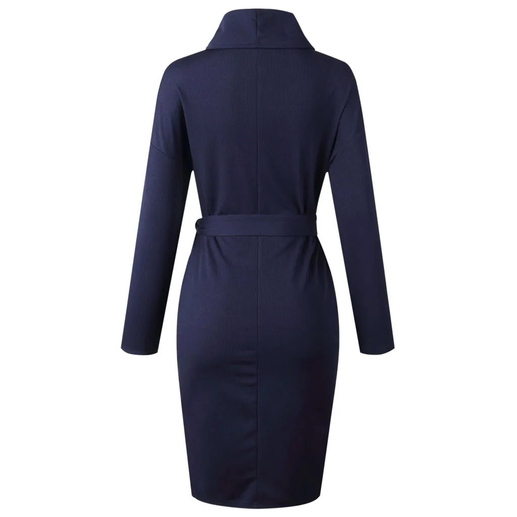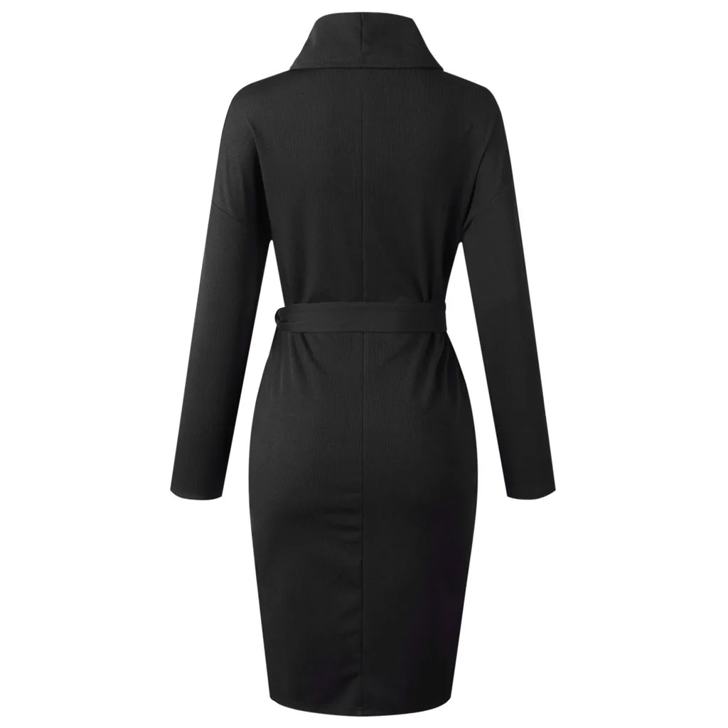 Женщины Высокий воротник с длинным рукавом Толстовка пуловер платье рубашки Топ Блузка