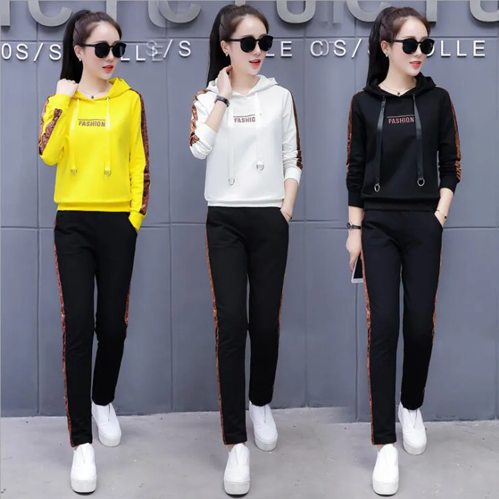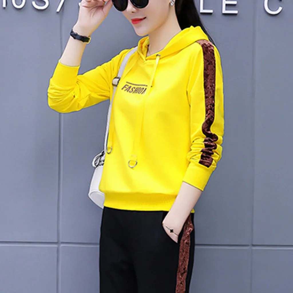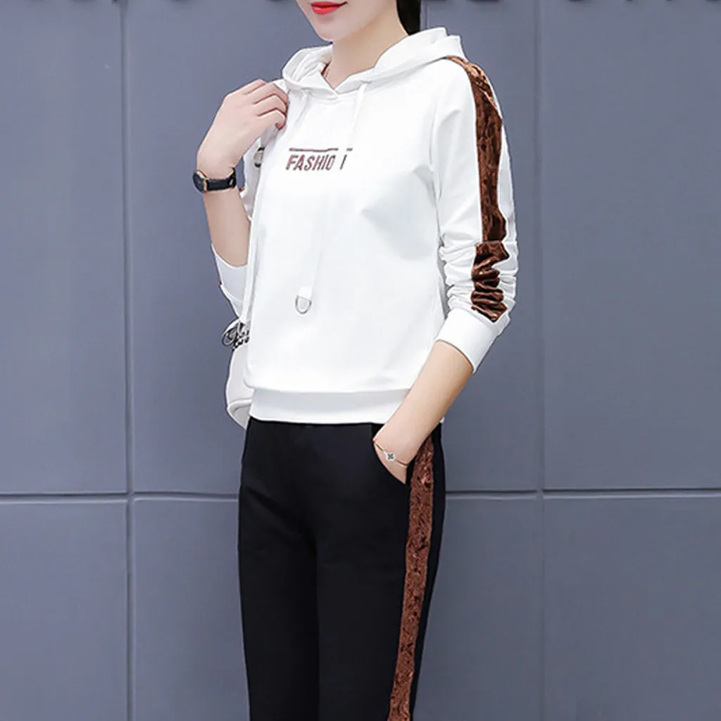 Модный женский пуловер с капюшоном, повседневные брюки с длинным рукавом, спортивный костюм
