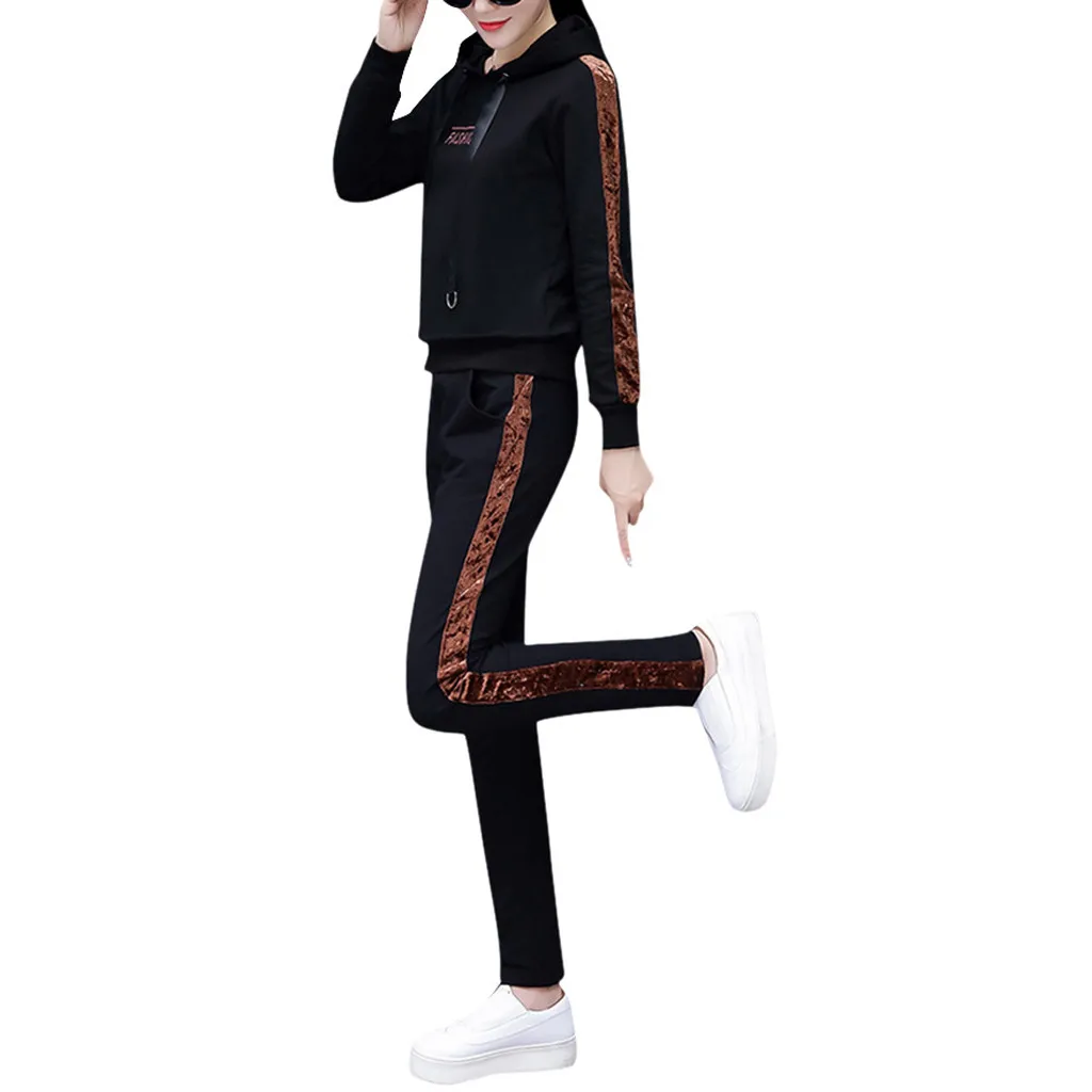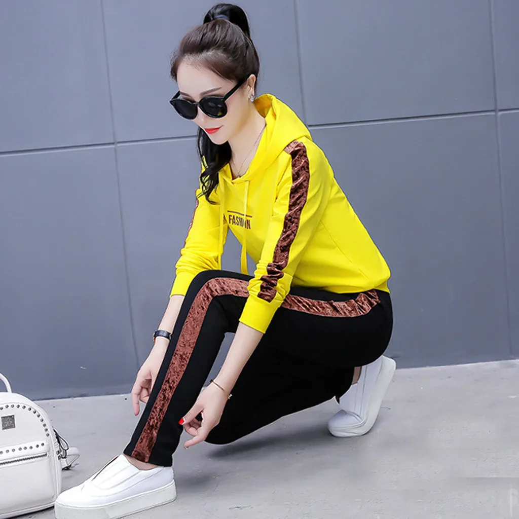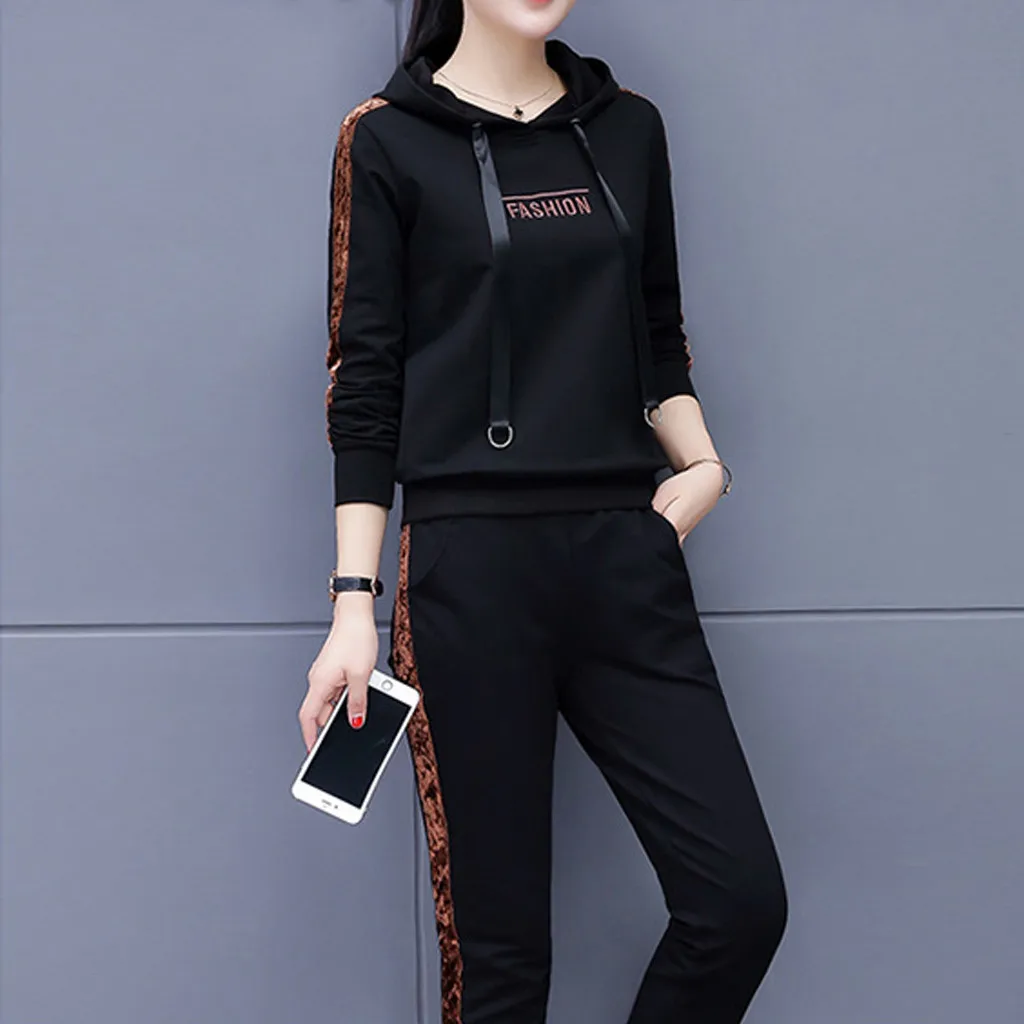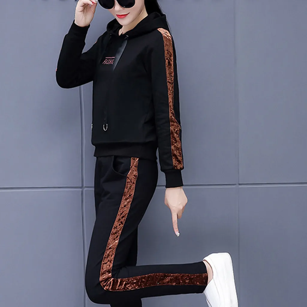 Модный женский пуловер с капюшоном, повседневные брюки с длинным рукавом, спортивный костюм