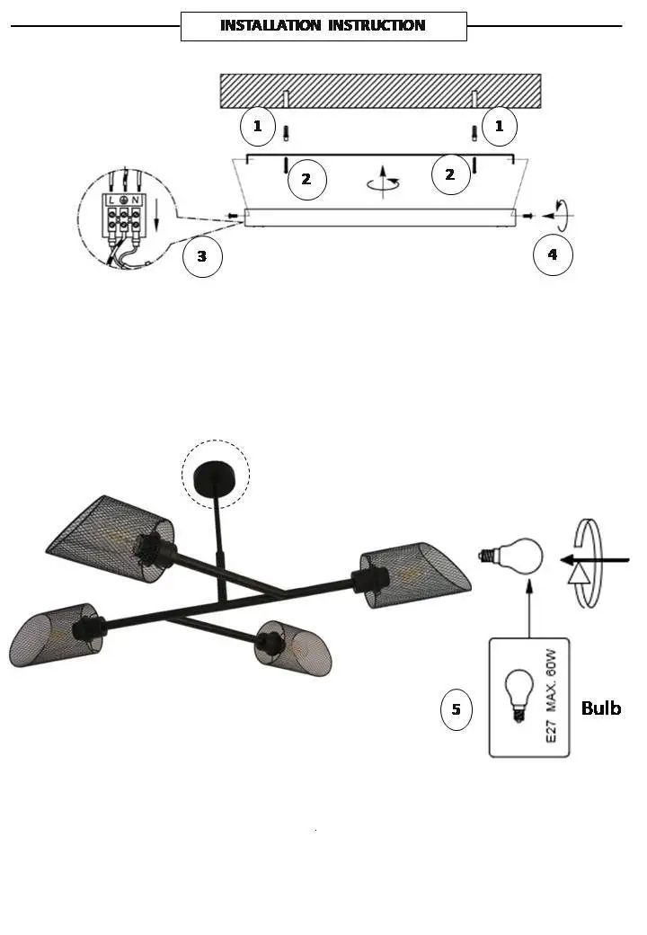 4).4 x E 27 макс. 40 Вт (лампа не входит в комплект)