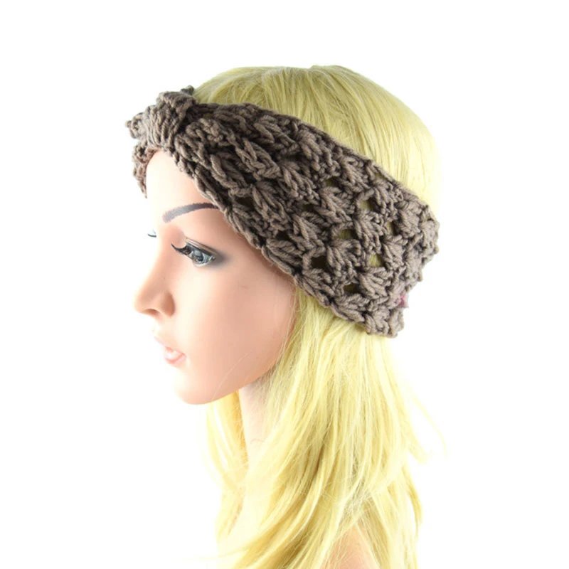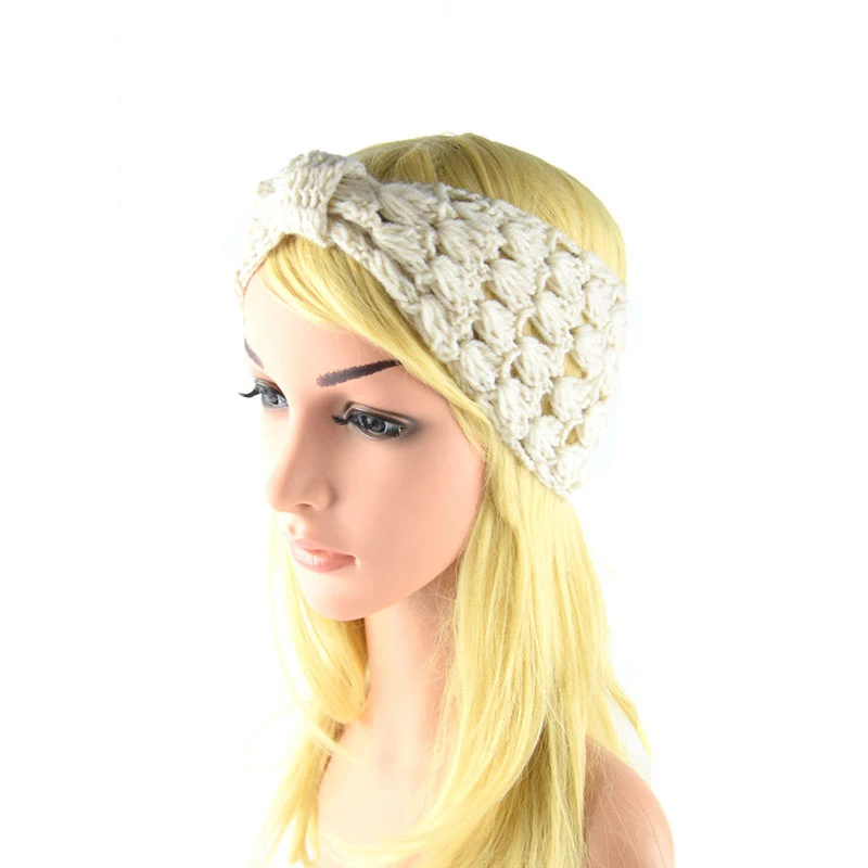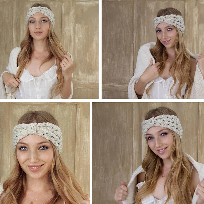 Вязанная повязка на голову с бантом; Эластичная повязка на голову ручной работы; Теплая повязка на голову