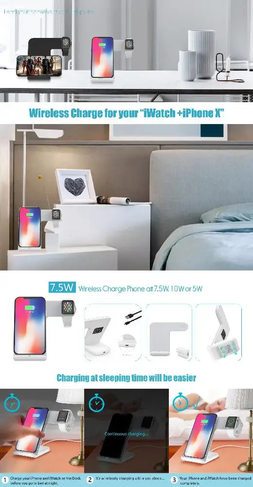 Вы должны заряжать их с адаптером 9 В/1,6 a во время зарядки телефона и часов одновременно. (Адаптер не входит в комплект).