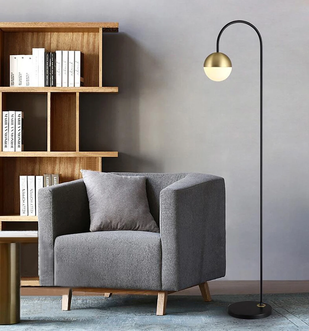 Современный напольный светильник из золотистого стекла, круглый шар