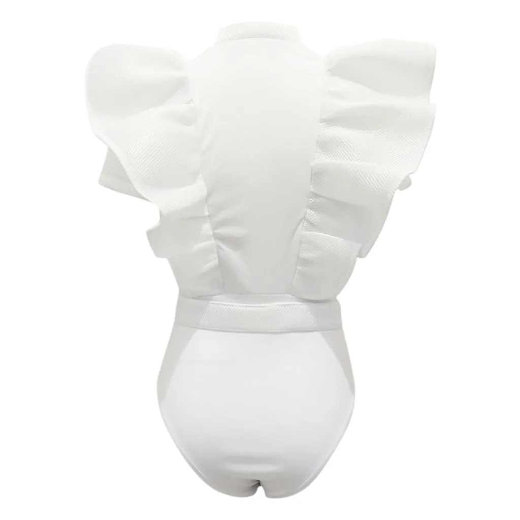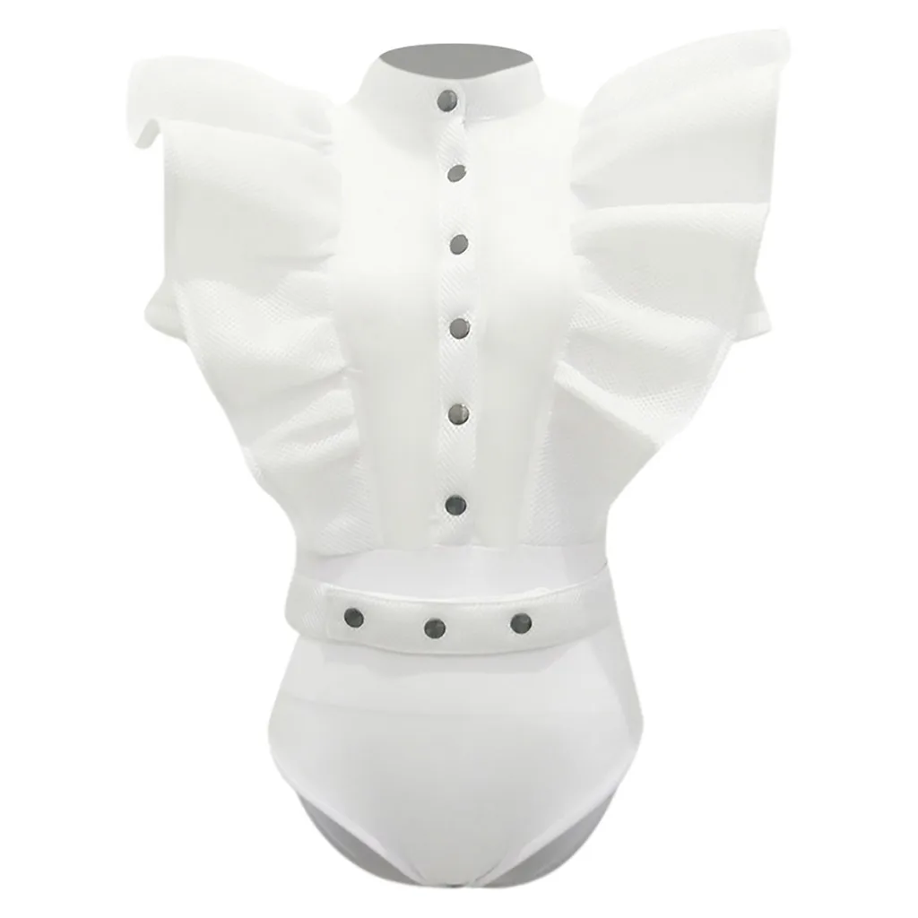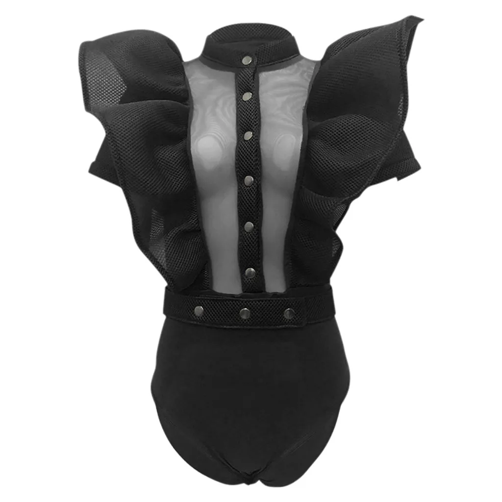 Женский комбинезон с оборками и пуговицами, открытый Облегающий комбинезон, привлекательный сетчатый комбинезон для женщин