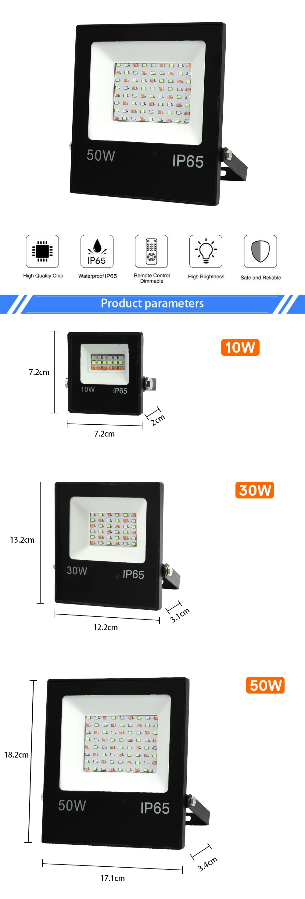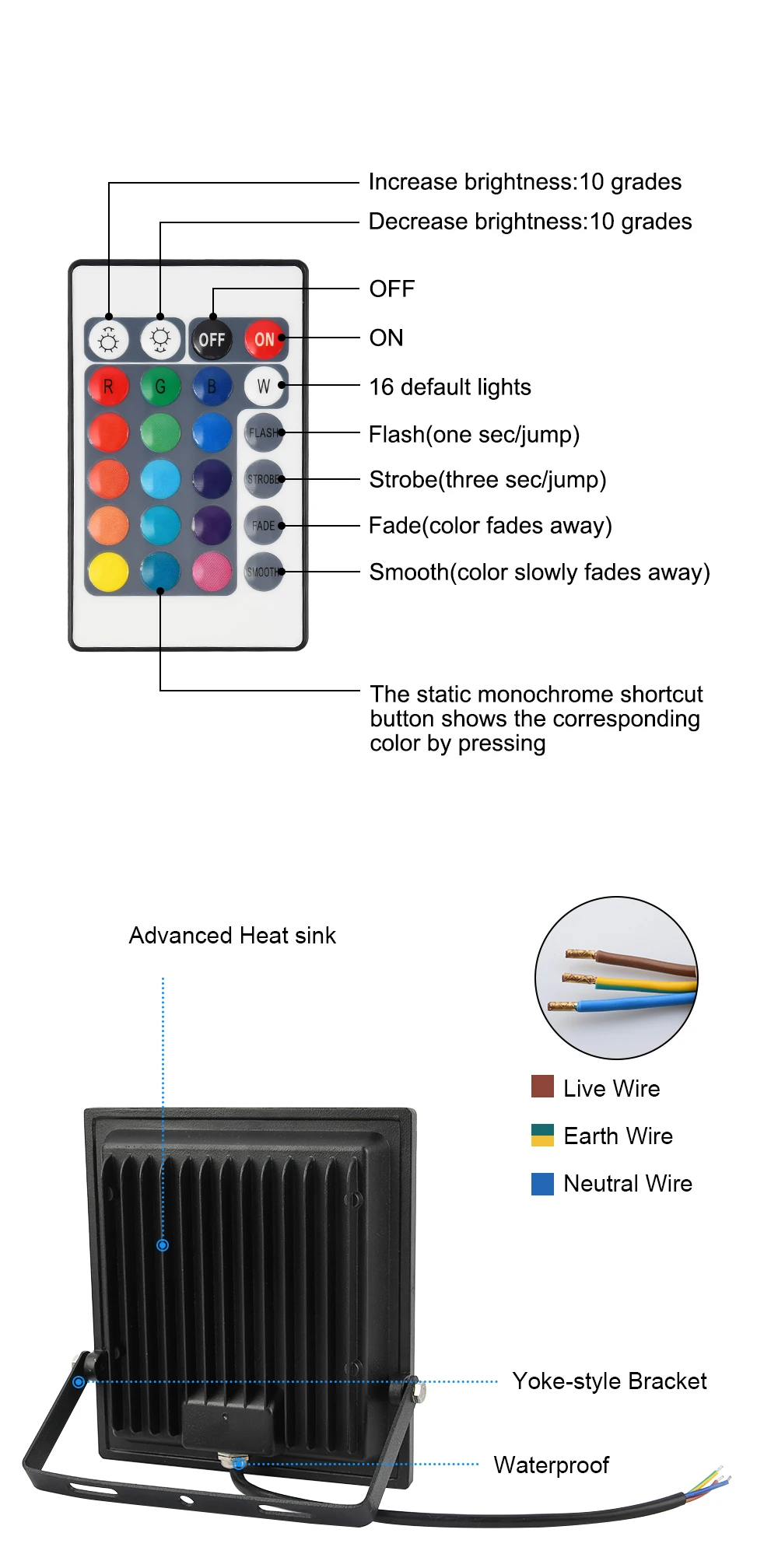 Примечание: Когда вы выбираете один цвет, вы получите прожектор без пульта дистанционного управления, когда вы выбираете «rgb', вы получите прожектор с пультом дистанционного управления (в комплект не входит аккумулятор).
