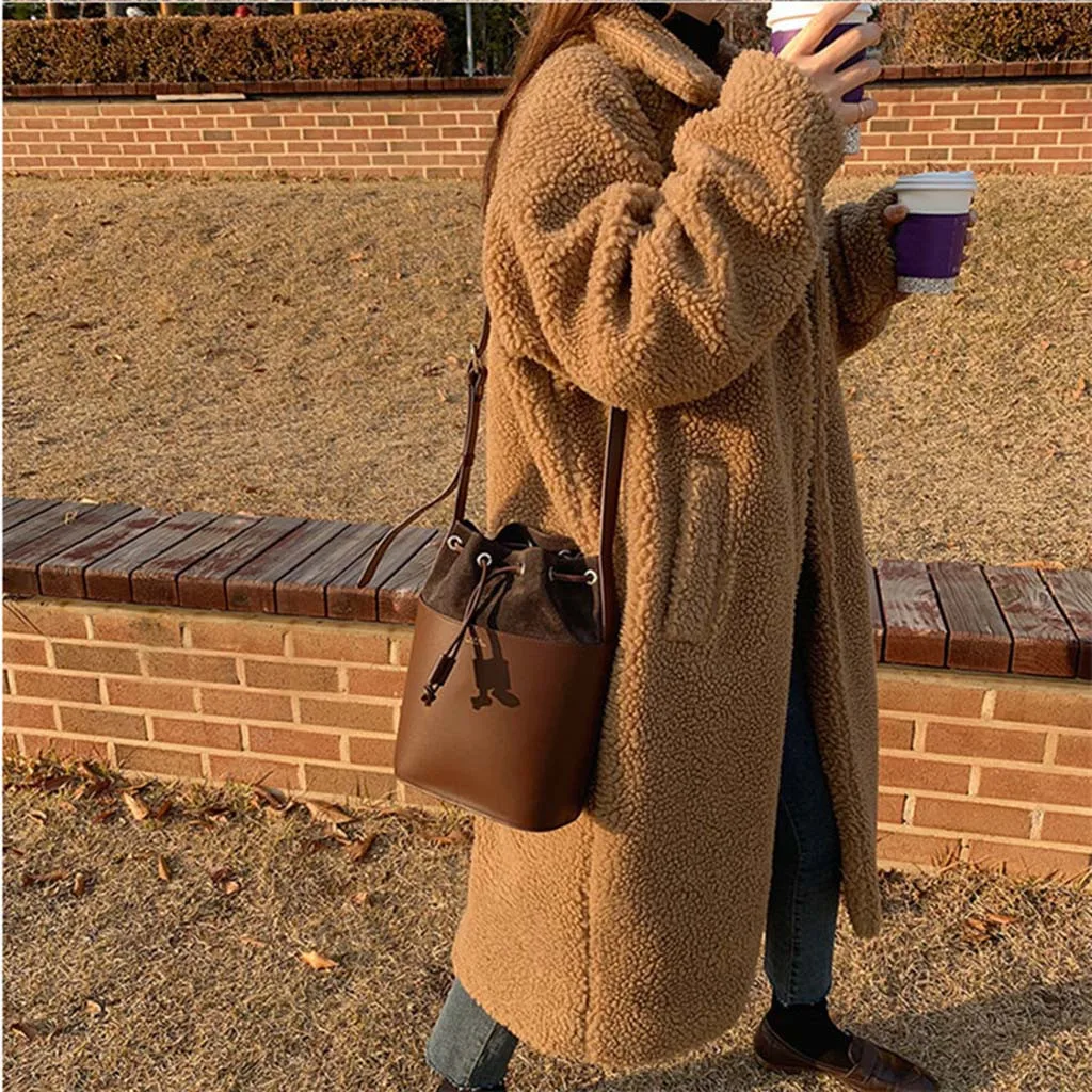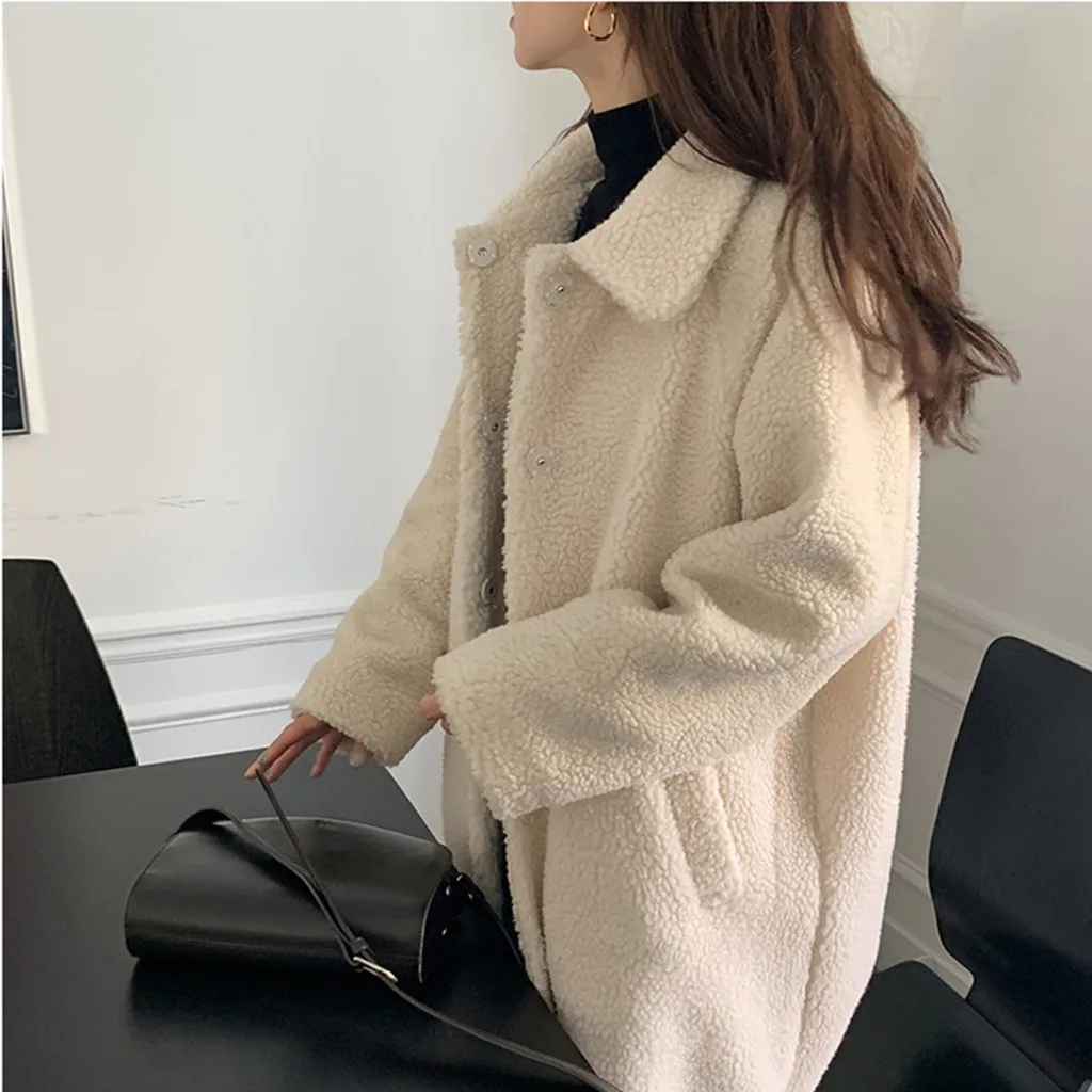 Женская маленькая зернистая овечья кожа теплое пальто свободная стеганая ветровка куртка