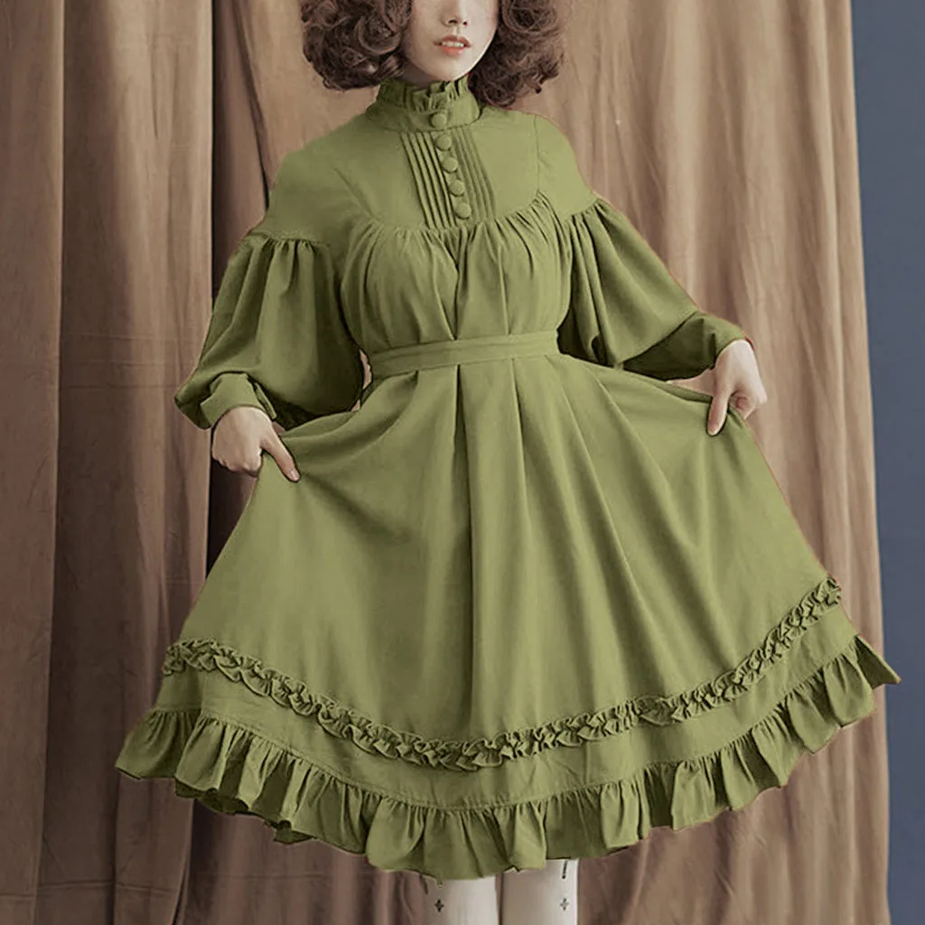 Женское платье с длинным рукавом и кружевным воротником-стойкой, милое маленькое платье