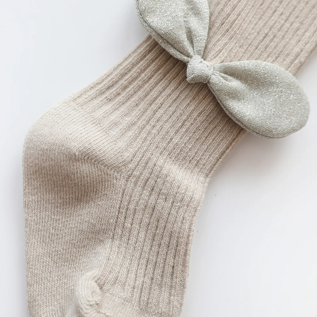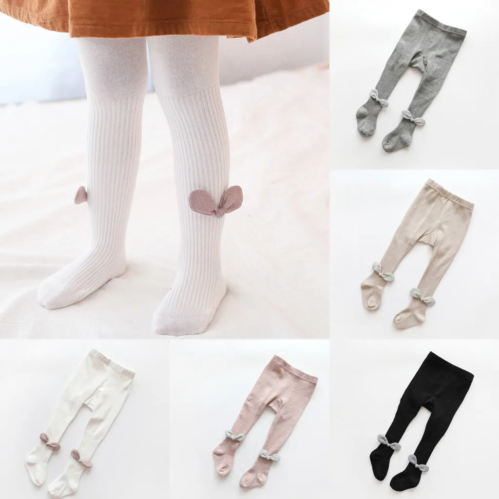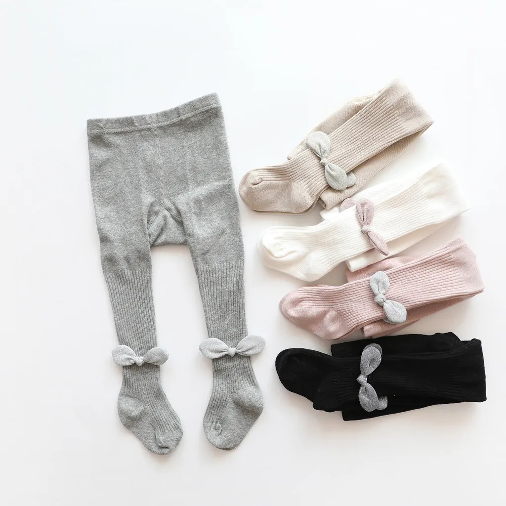 Милые однотонные хлопковые колготки с бантом для маленьких девочек; чулки