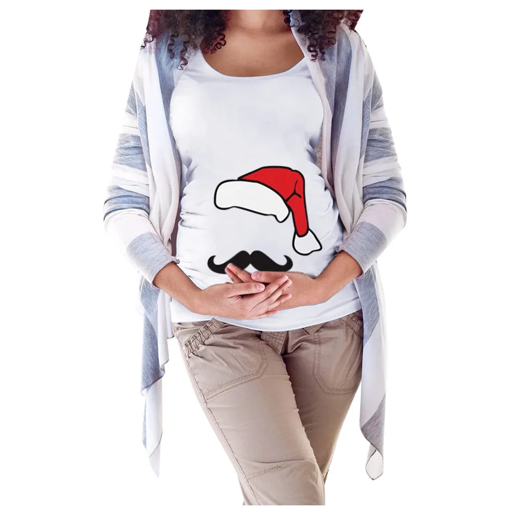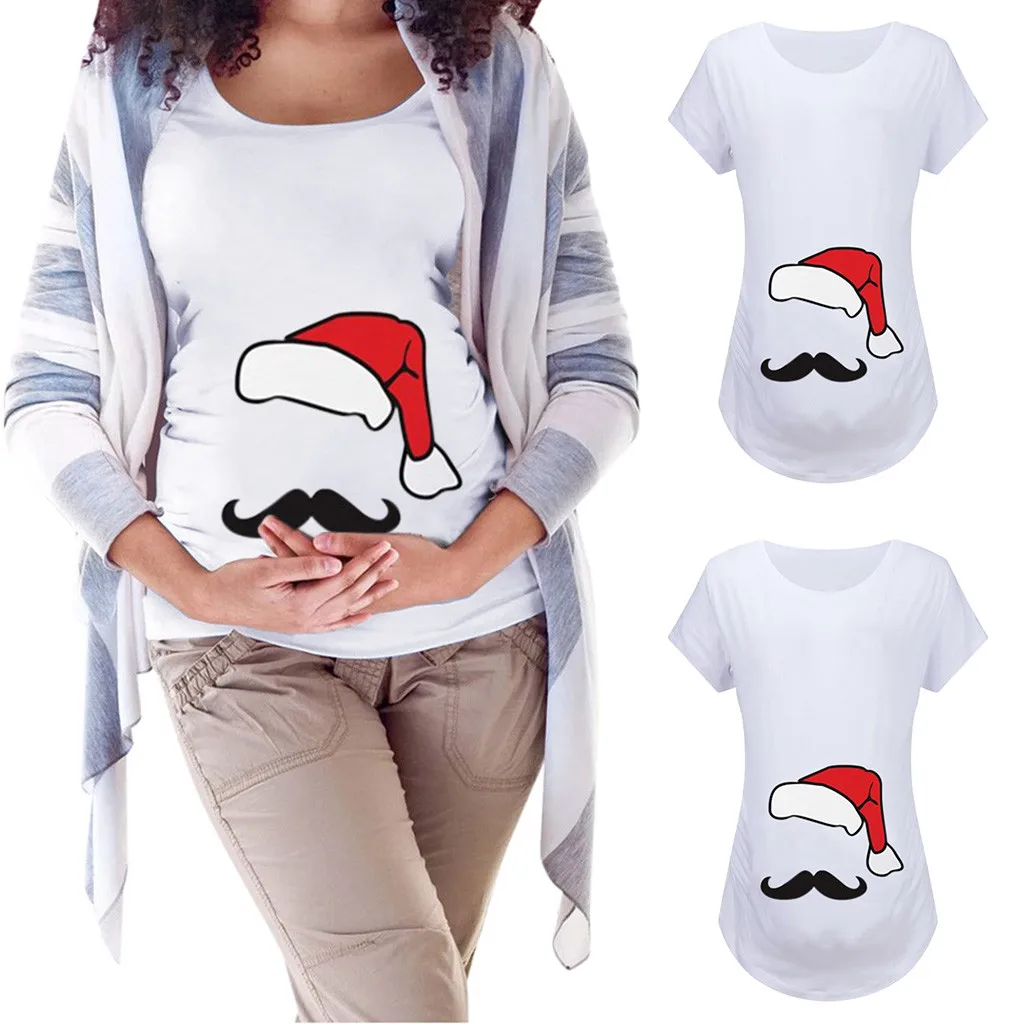 Свободная Рождественская футболка с круглым вырезом и короткими рукавами для беременных