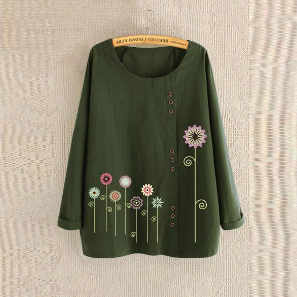 Особенности: хлопок и лен, большие размеры, винтажный стиль, v-образный вырез, вышивка, пуговица, Повседневная блуза, длинный рукав,Повседневная одежда; стильный и модный дизайн; летние и весенние повседневные топы.