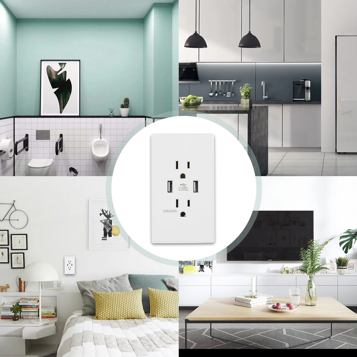 Простая установка: встроенный разъем зарядного устройства USB может быть легко установлен в стене вашей спальни, гостиной, кухни или в любой другой комнате, вы можете быстро зарядить устройство, легко и удобно.