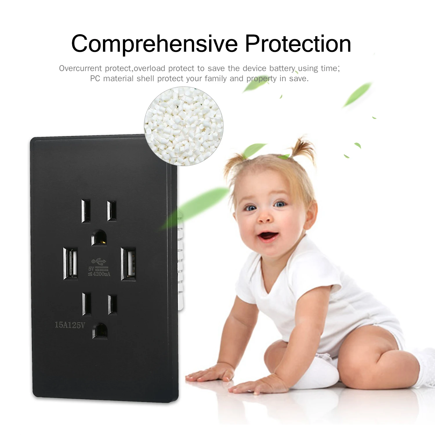 Компактный дизайн: настенная розетка небольшого размера имеет 2 зарядного устройства и 2 usb-порта, обеспечивает четыре отдельные электрические розетки для питания или зарядки ваших гаджетов.