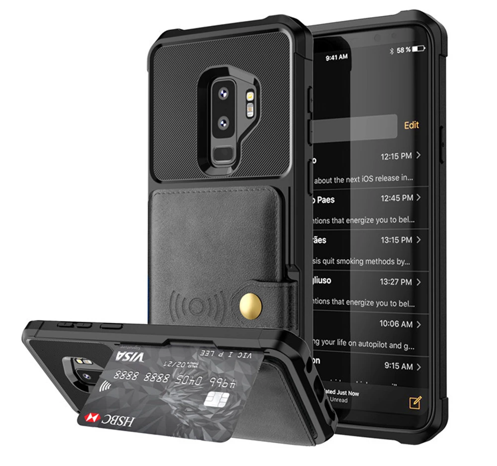 Пункты продажи Модель: чехол для Samsung Galaxy S20 Ultra S20 Plus Galaxy Note 20 10 9 S10 S10 Plus S10e S10 Lite с отделением для карт Материал: высококачественный ПК + кожа Характеристики: слот для карт + гибридные Чехлы из кожи и силикона Функция: Ударопрочный + противоударный + карман для карт + устойчивый к царапинам Военные испытания на падение. Двухслойная структура обеспечивает полную защиту вашего устройства на 360 градусов. Сочетание высококлассных материалов из поликарбоната и ТПУ обеспечивает дополнительную защиту. Легкий доступ к картам Reach: можно разместить 5 карт (ID, банковские карты или лицензии) или просто разместить 5 карт и некоторые сложенные наличные деньги. Удобный стиль жизни: слот для скрытых карт надежно хранит ваши карты и наличные деньги, что делает покупки и оплату более удобными. Приподнятые края защищают экран от царапин и прямых воздействий. Усиленные резиновые углы удары для уменьшения возможности разрушений