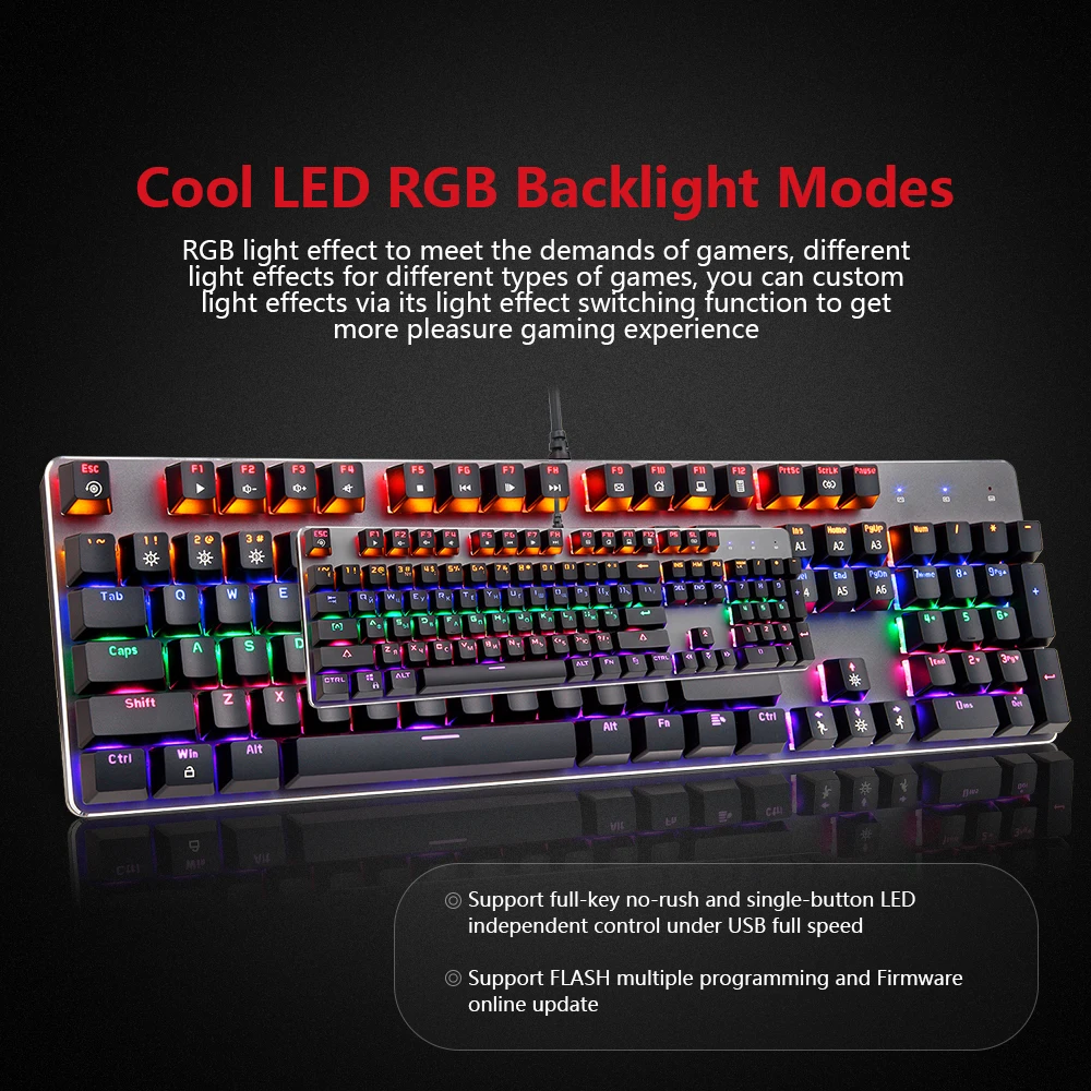 104 клавиши, встроенный игровой чип, передовая технология механического переключения, дает вам более приятные ощущения.