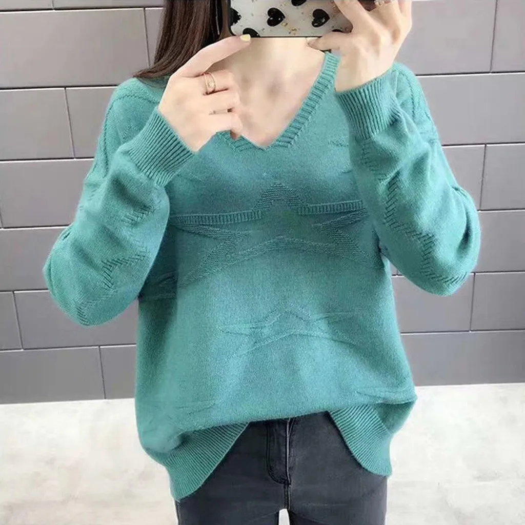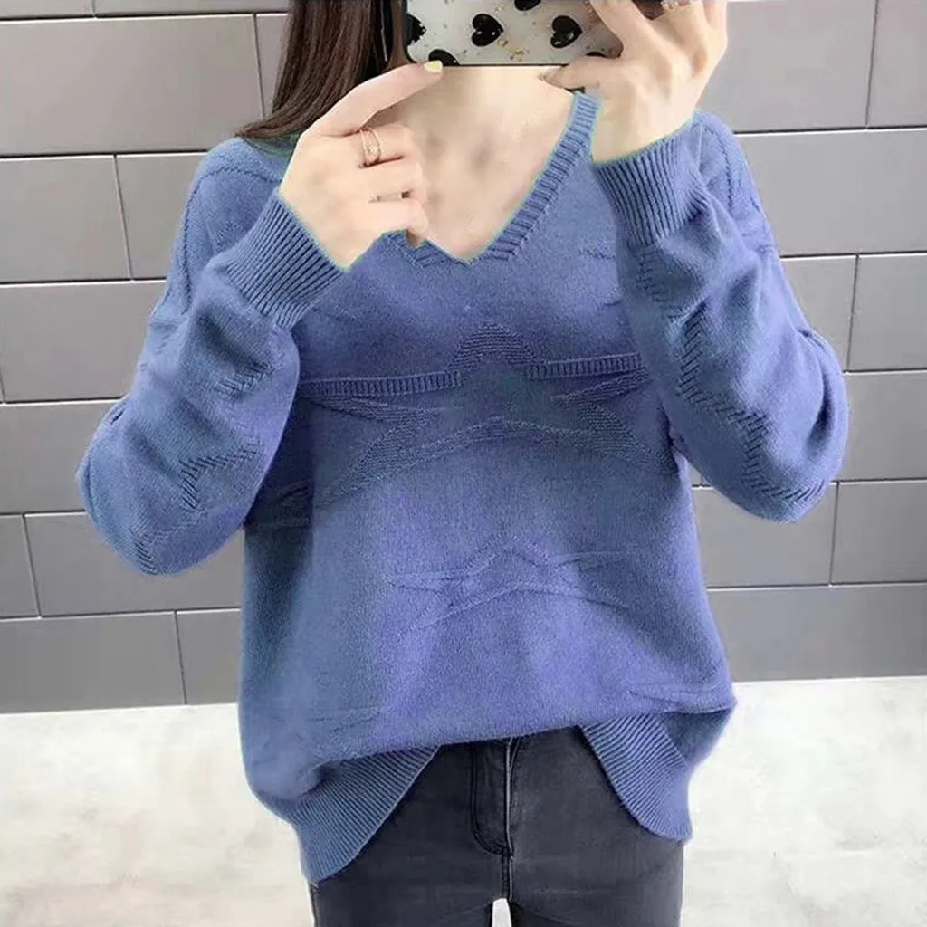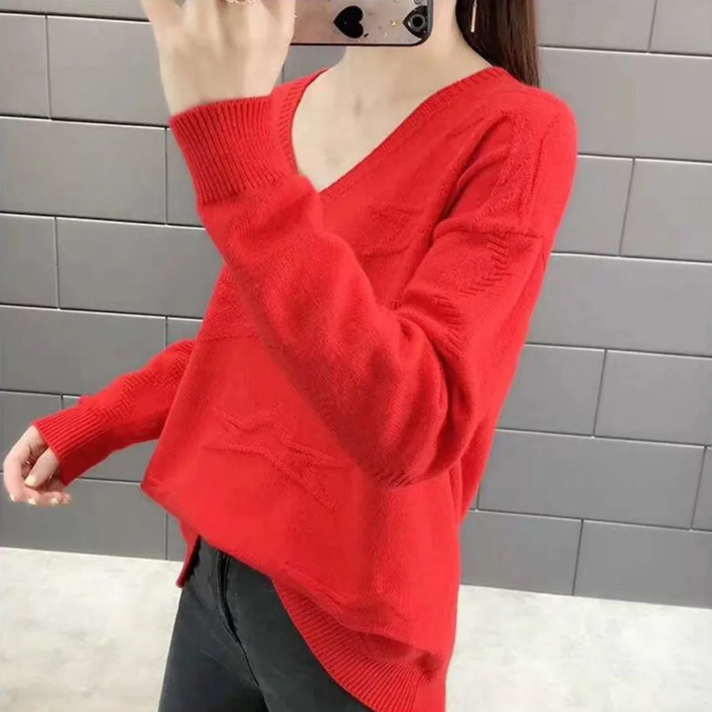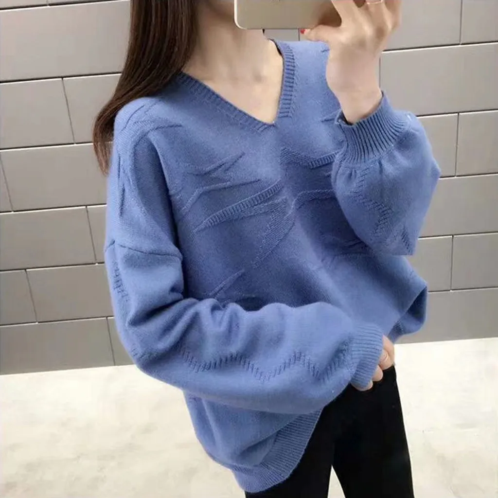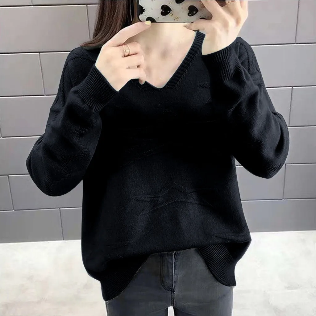 1. Женские повседневные, с v-образным вырезом, однотонные, блузки, с длинным рукавом, повязки, вязаные свитера топы.
