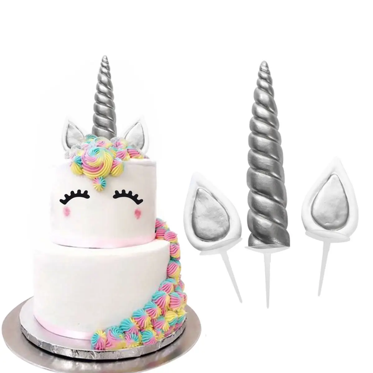 Ручная работа: Этот Топпер разработан с рогом и ушами единорога, ручной работы украшения торта.