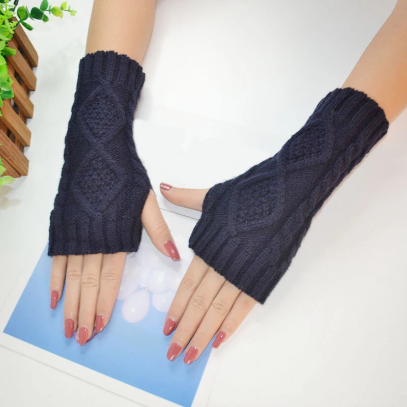 1 пара зимних мужских ромбических вязаных перчаток без пальцев, модные теплые рукавицы
