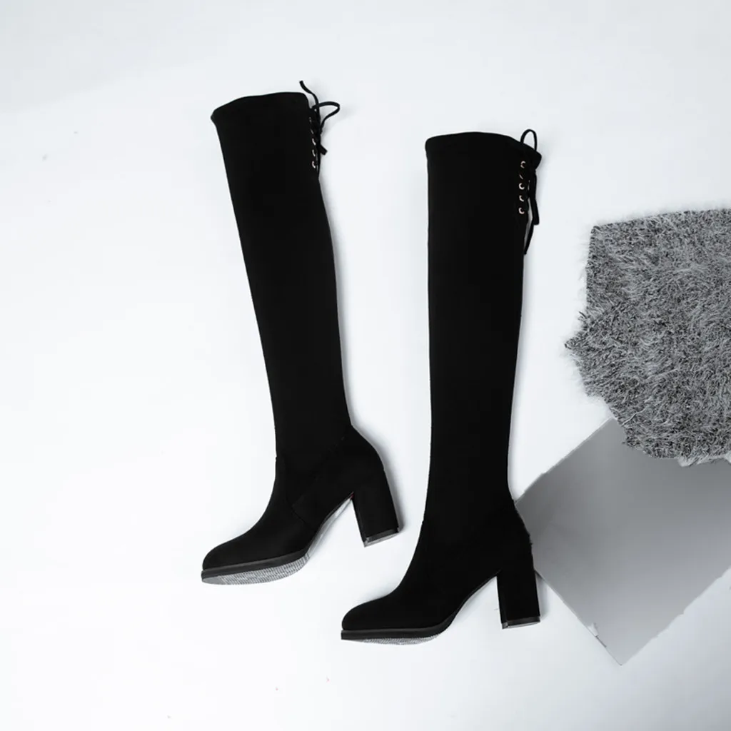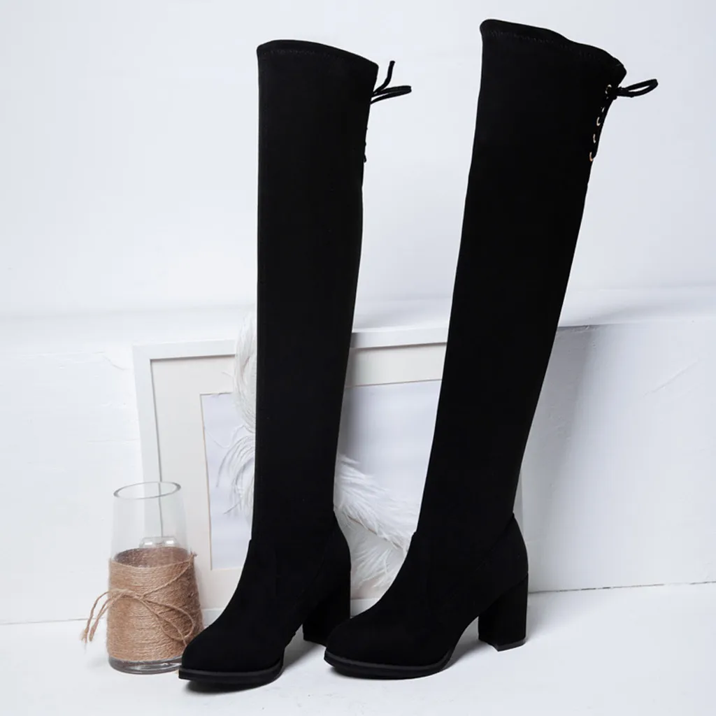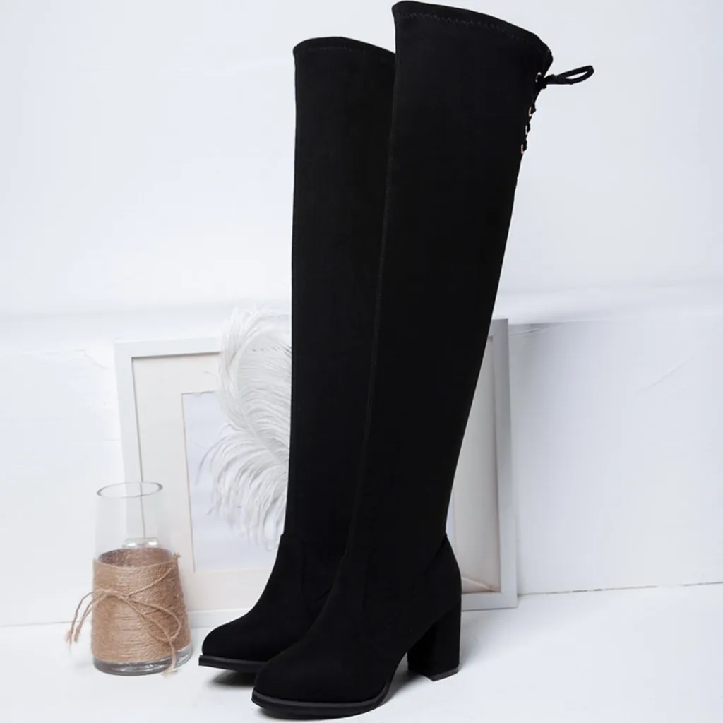 Сапоги на высоком каблуке Стиль:Квадратный каблук