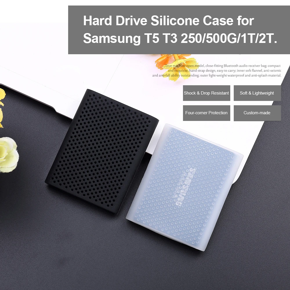Этот товар специально разработан для защиты вашего жесткого диска от царапин, повреждений и падений, который изготовлен из высококачественного силикона, чтобы обеспечить его лучшую защиту, водонепроницаемость и ударопрочность. Особенности: Силиконовый материал прочный, экологически чистый, мягкий с хорошей эластичностью. Обеспечивает лучшую защиту, защиту от воды, ударов и падений. Идеально подходит для защиты жесткого диска от царапин и повреждений. Нескользящая конструкция обеспечивает вам лучшее сцепление, когда вы держите жесткий диск в руке или когда вы размещаете его на столе или столе. Подходит для Samsung T5 T3 250/500G/1T/2T. Параметры: Товар: защитный чехол Материал: силикон Размер изделия: прибл. 7,6*6 см/3 * 2.4in (Д * Ш * В) Вес изделия: прибл. 17 г/0,6 унции