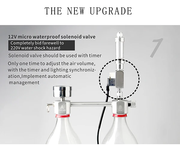 Электромагнитный клапан: для управления включением и выключением системы генератора CO2 с помощью таймера (не входит в комплект).