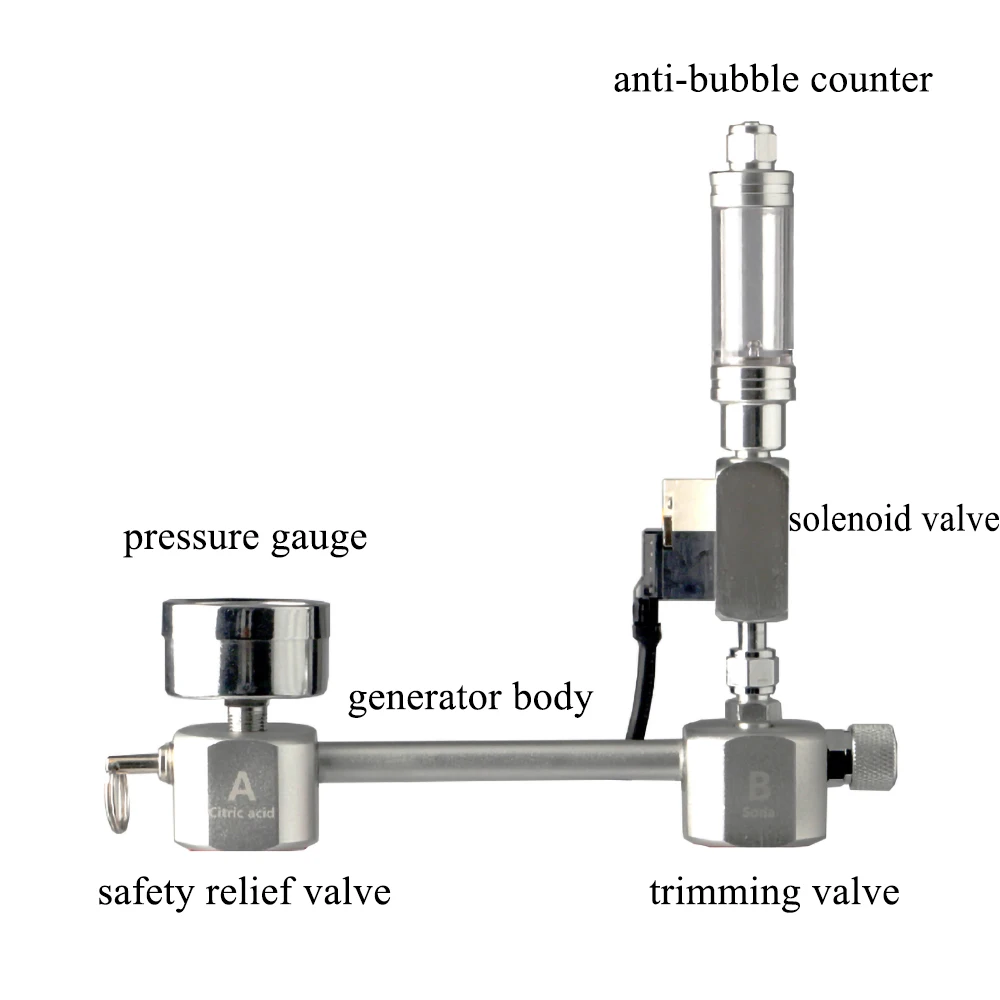 3 типа Дополнительно: система генератора CO2/система генератора CO2 + Счетчик пузырьков с обратным клапаном/система генератора CO2 + Счетчик пузырьков с контрольным клапаном + соленоид