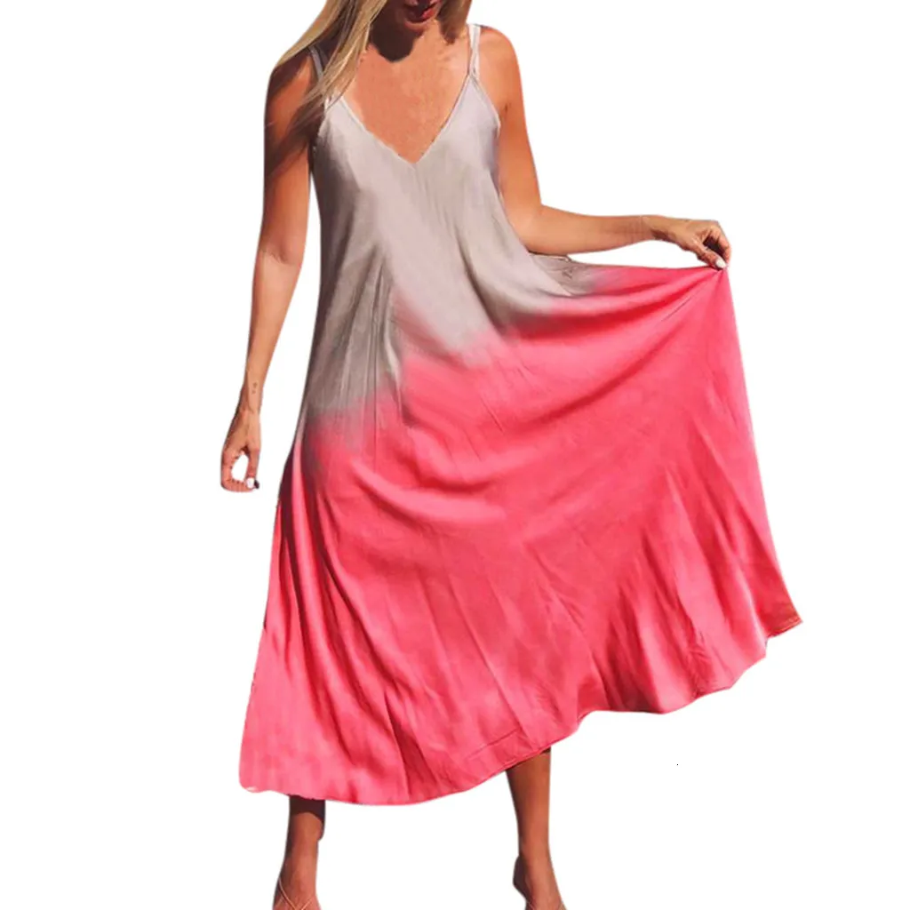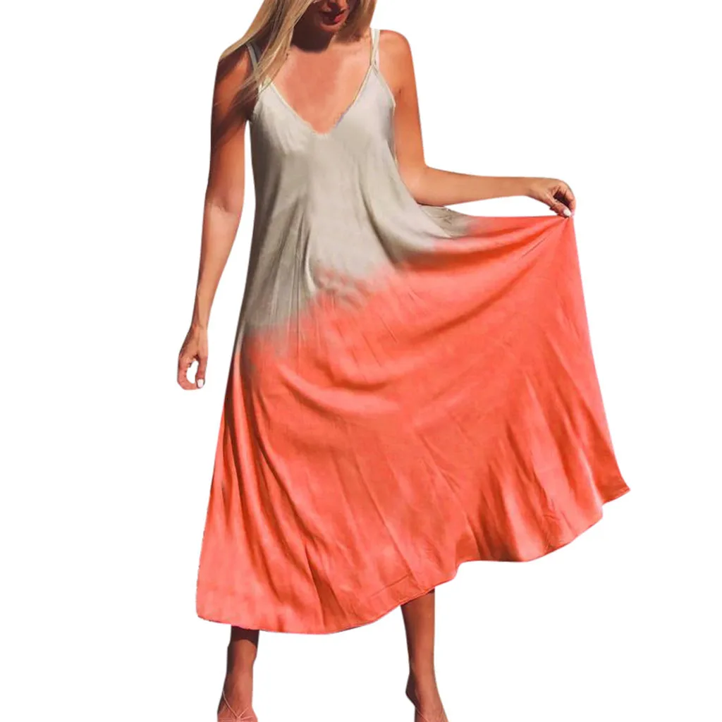 Женское летнее платье макси, модное платье с v-образным вырезом, без рукавов, с рисунком, градиентные вечерние длинные платья, летнее платье 2019, vestidos de verano, новинка