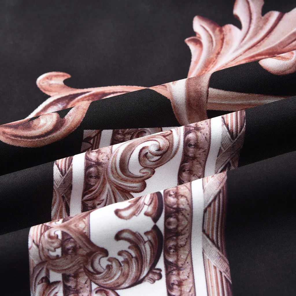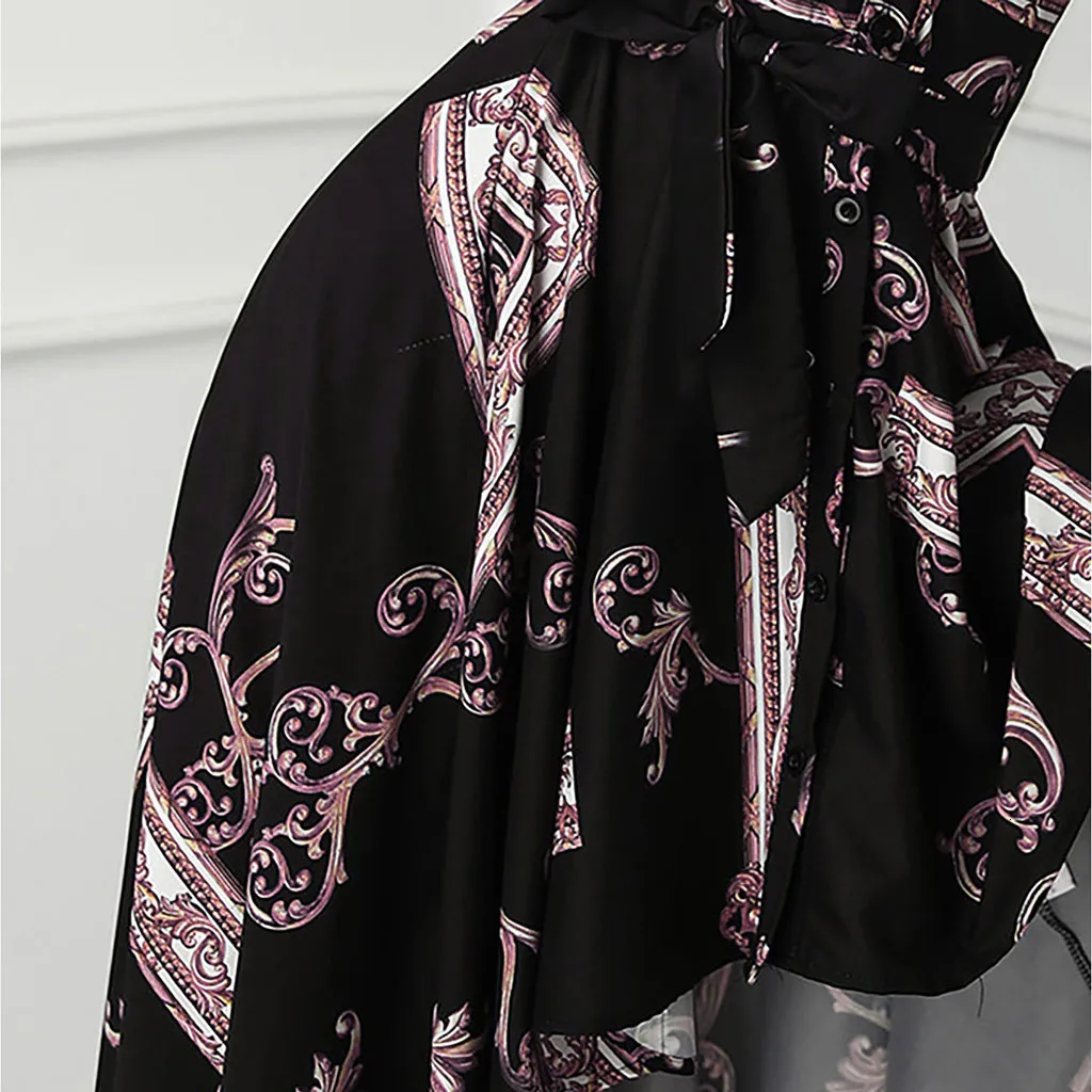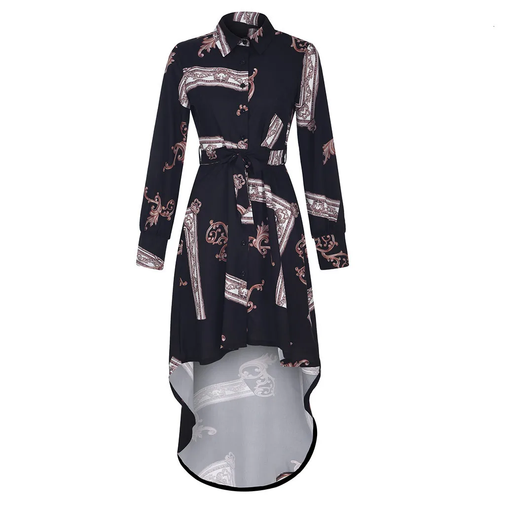 Женское платье-рубашка с длинным рукавом и отложным воротником с высокой талией и принтом