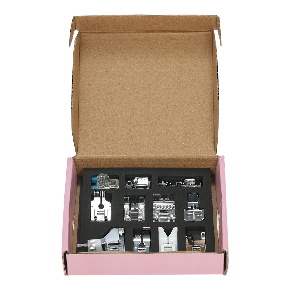 11 шт. профессиональная швейная машина прижимная лапка набор для большинства бытовых многофункциональных швейных машин с более чем 15 узорами стежка. Может удовлетворить ваши различные потребности лапки.