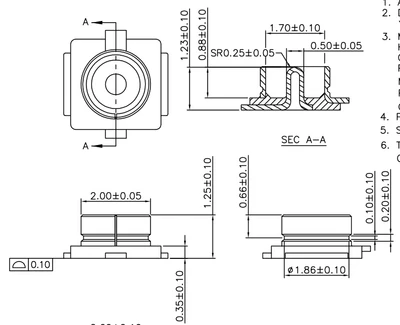 20279o001E IPEX jack 3*3*1,25 мм Материал: основной материал-медь, корпус-золотой цвет Диапазон частот покрытия: 0-4 ГГц Характерное сопротивление: 50 Ω сопротивление изоляции: 500m Ω Минимальное напряжение: 200 В переменного тока Отношение стоящей волны: 1.3Max (0-3 ГГц 1.2Max) Рабочая температура:-40-85 °C Применение: компьютер, ipad, беспроводной модуль и другое оборудование соответствия.