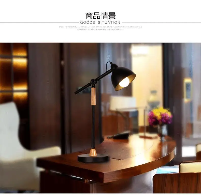 Черная настольная лампа из железного дерева, настольная лампа для спальни